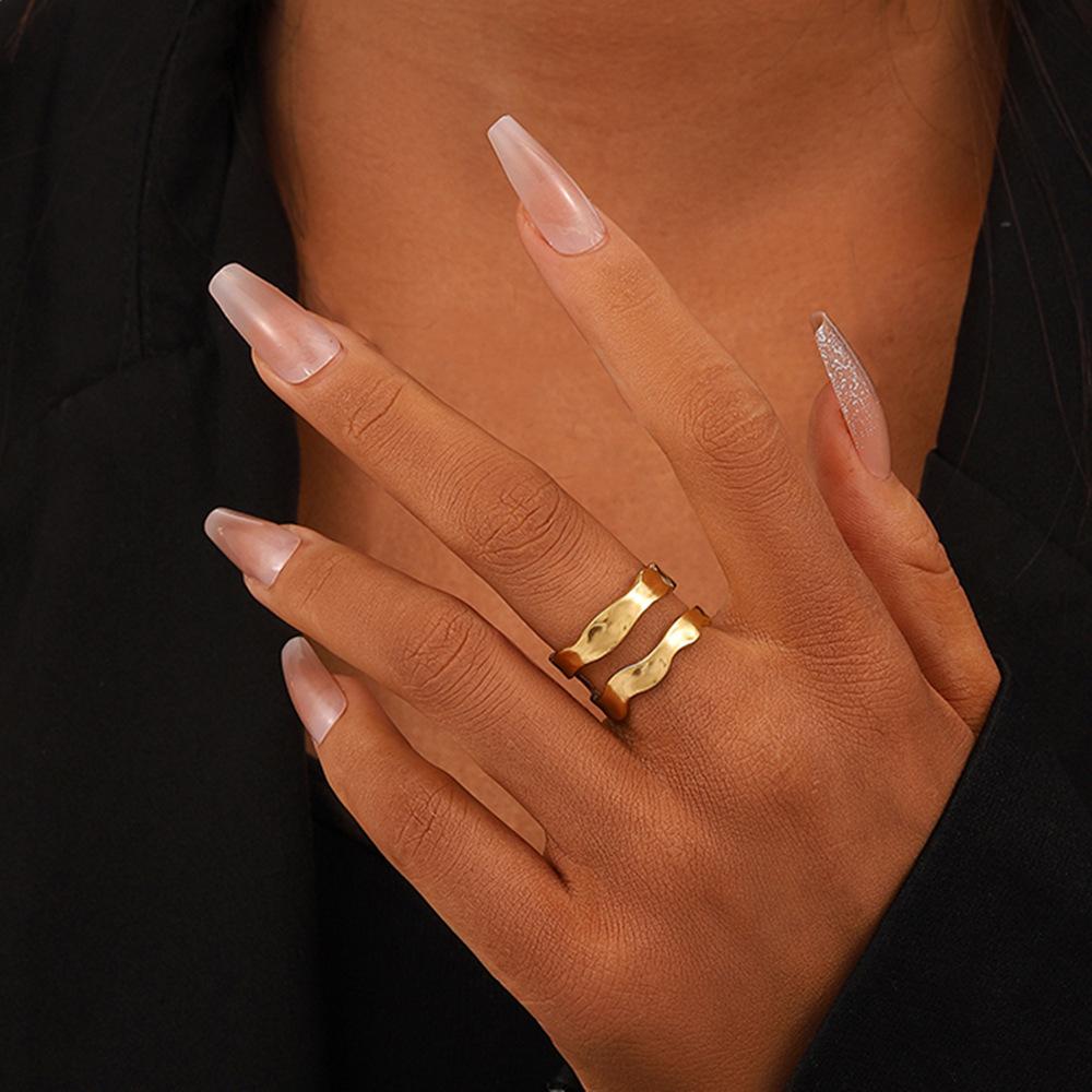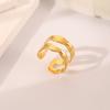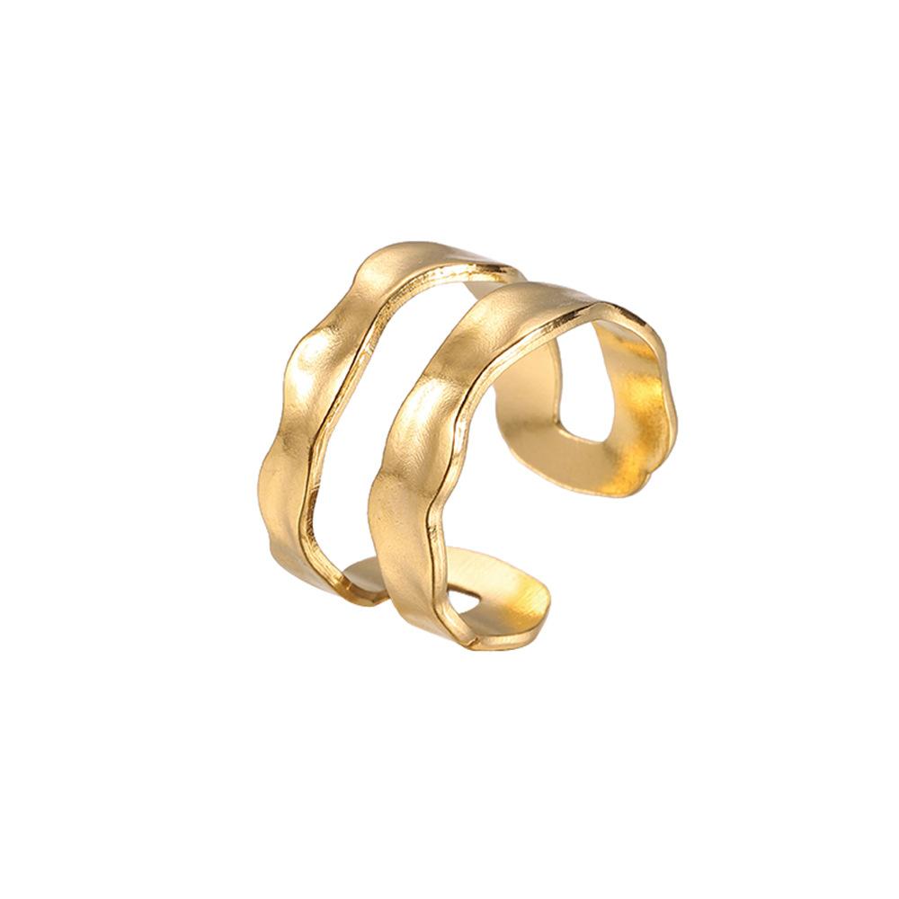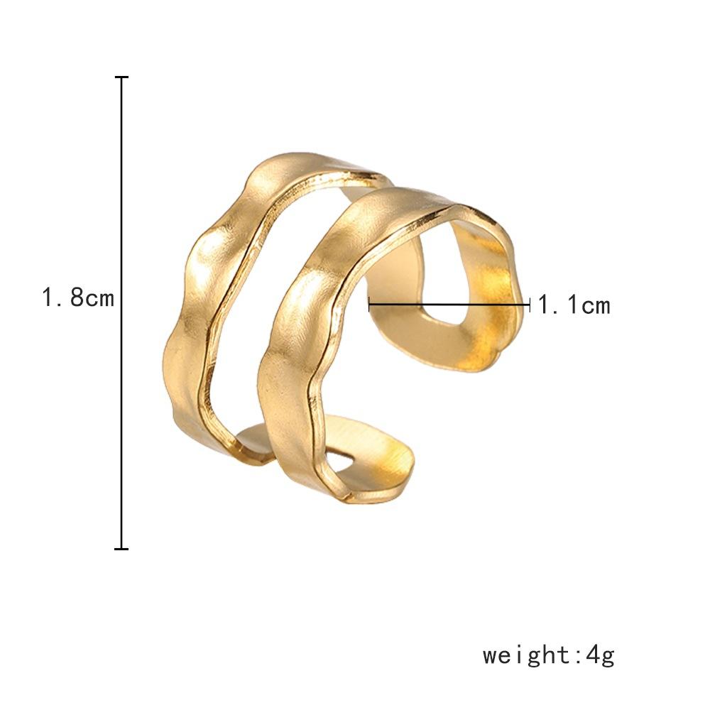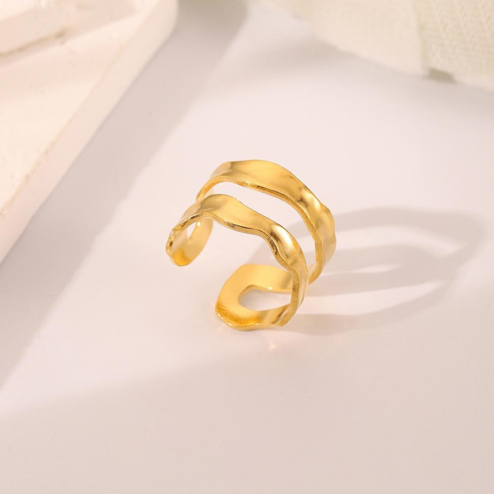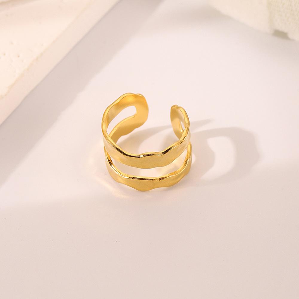 Anillo de acero inoxidable con doble capa irregular martillado, abierto, dorado, nuevo, a la moda francesa, combina con todo, joyería al por mayor
