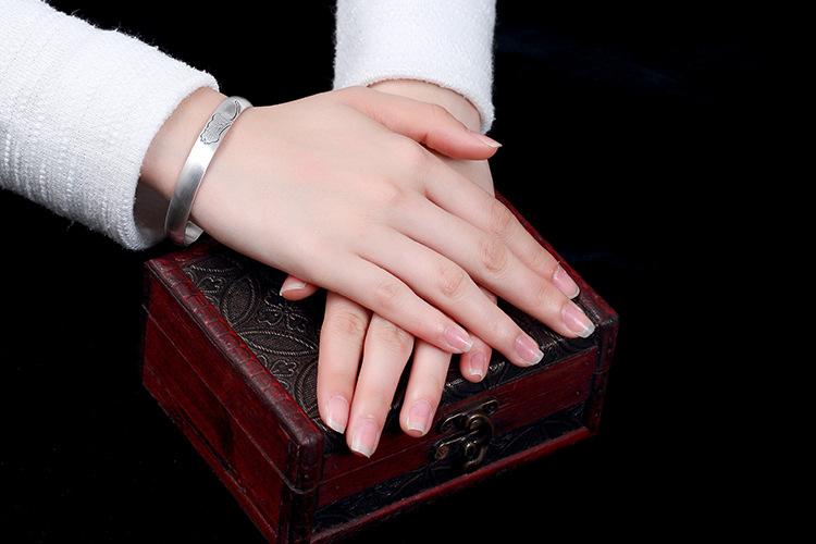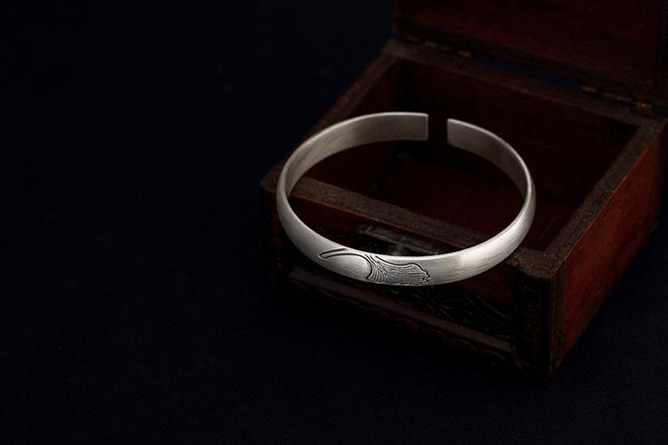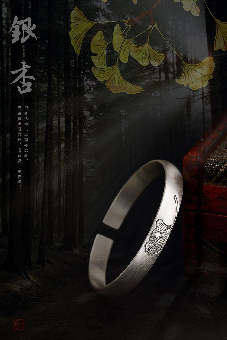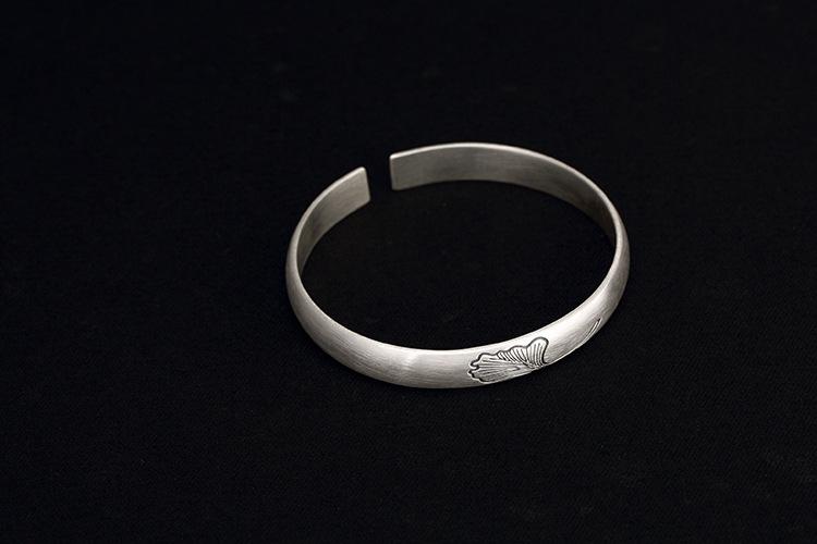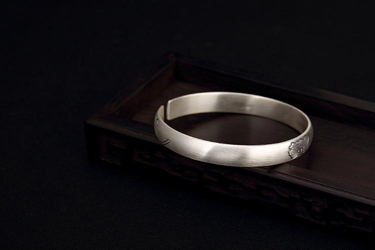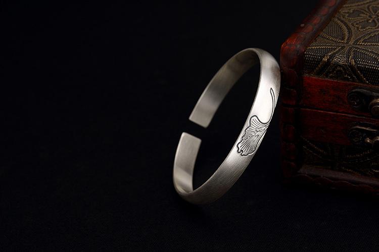 Pulsera de Plata Pura 9999 para Mujer, Pulsera de Hoja de Estilo Étnico Simple, Regalo de Cumpleaños, Joyería Pulsera de Ginkgo