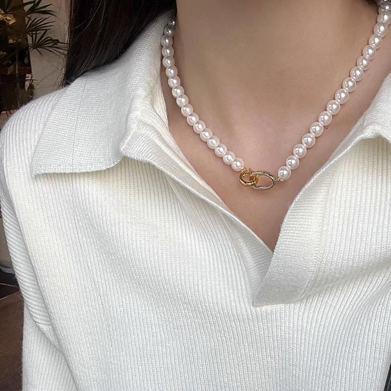 Collar de perlas para mujer, ligero, de lujo, de nicho, de alto grado, con temperamento, cadena de suéter, colgante, collar decorativo, cadena de clavícula, elegante, de alta gama