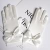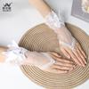 Guantes Cortos de Encaje de Malla Tejida Roja con Lazo Transparente de Red para Dedos Novia Vestido de Boda