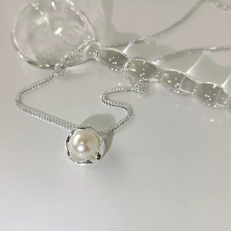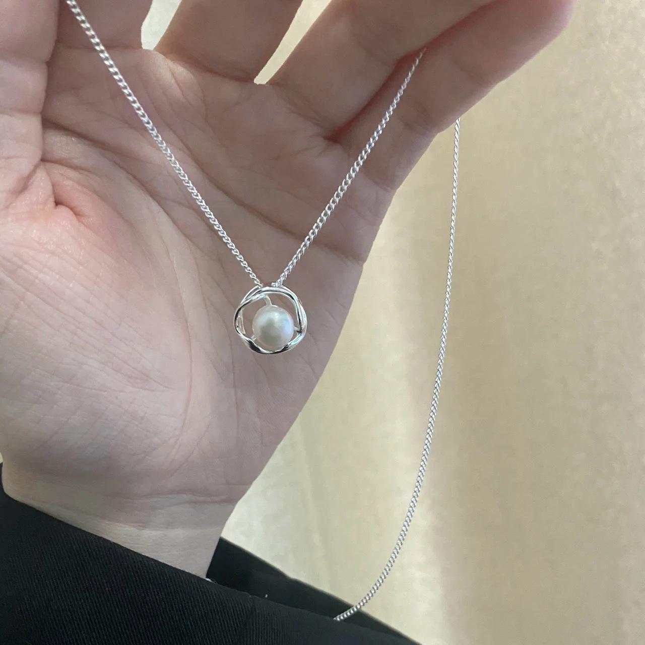 Collar de perlas de diseño, ligero, de lujo, con nicho, cadena para clavícula, joyería de nicho avanzada para mujer, colgante circular, sencillo, de verano.
