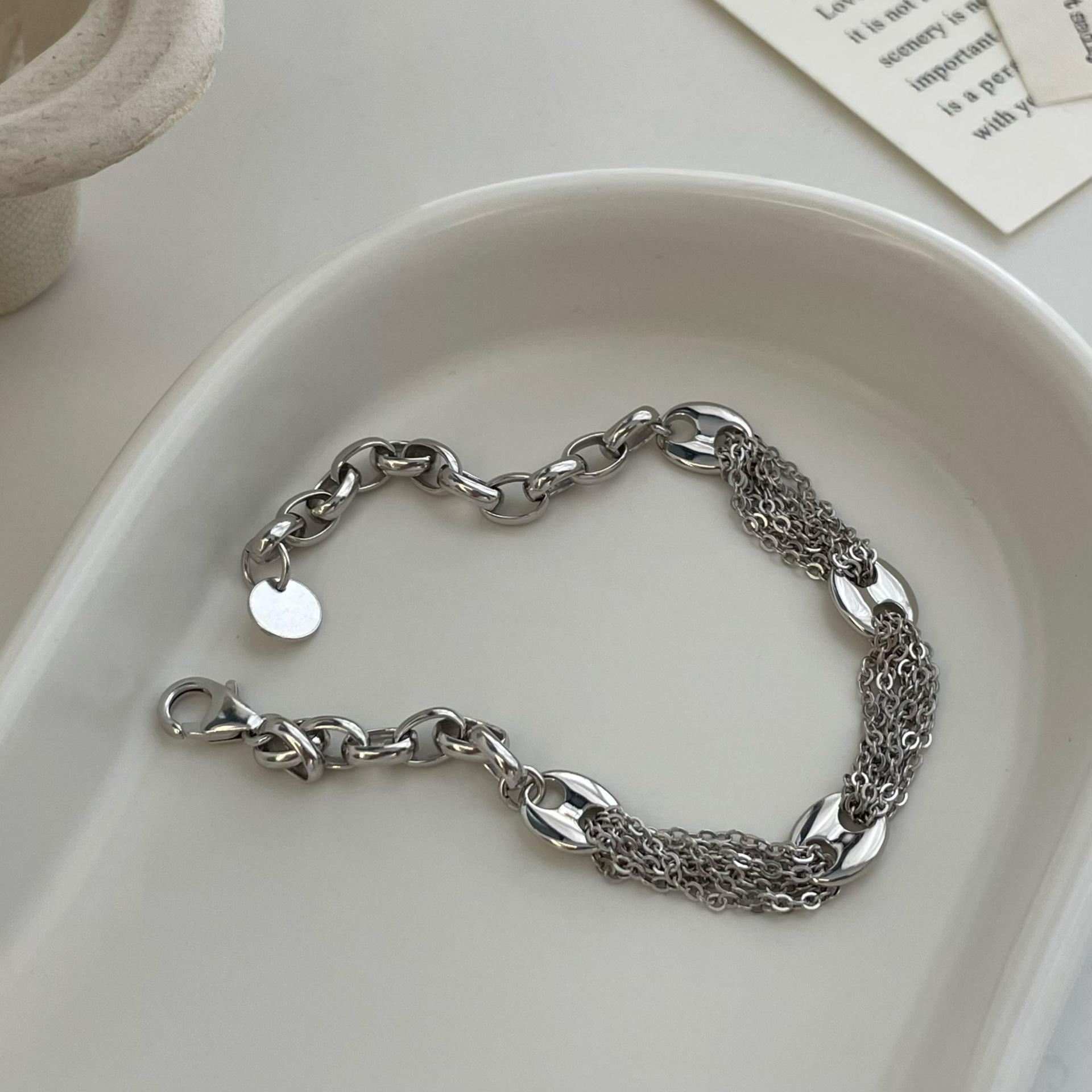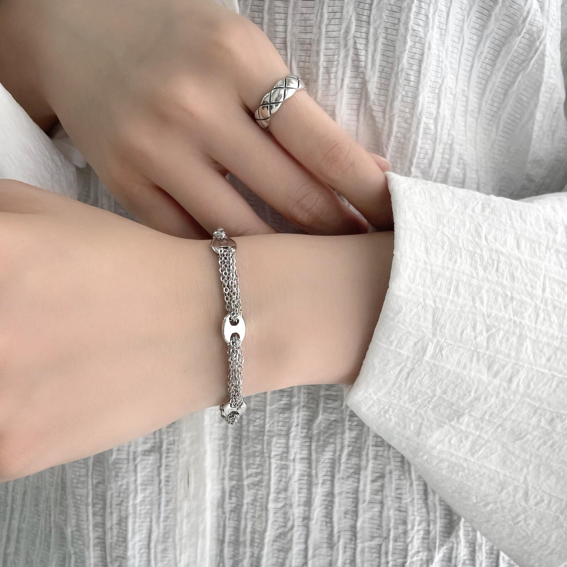 Pulsera de plata de ley S925 con cadena multisección y nariz de cerdo, diseño de nicho con personalidad femenina, tendencia 2023, nueva venta al por mayor