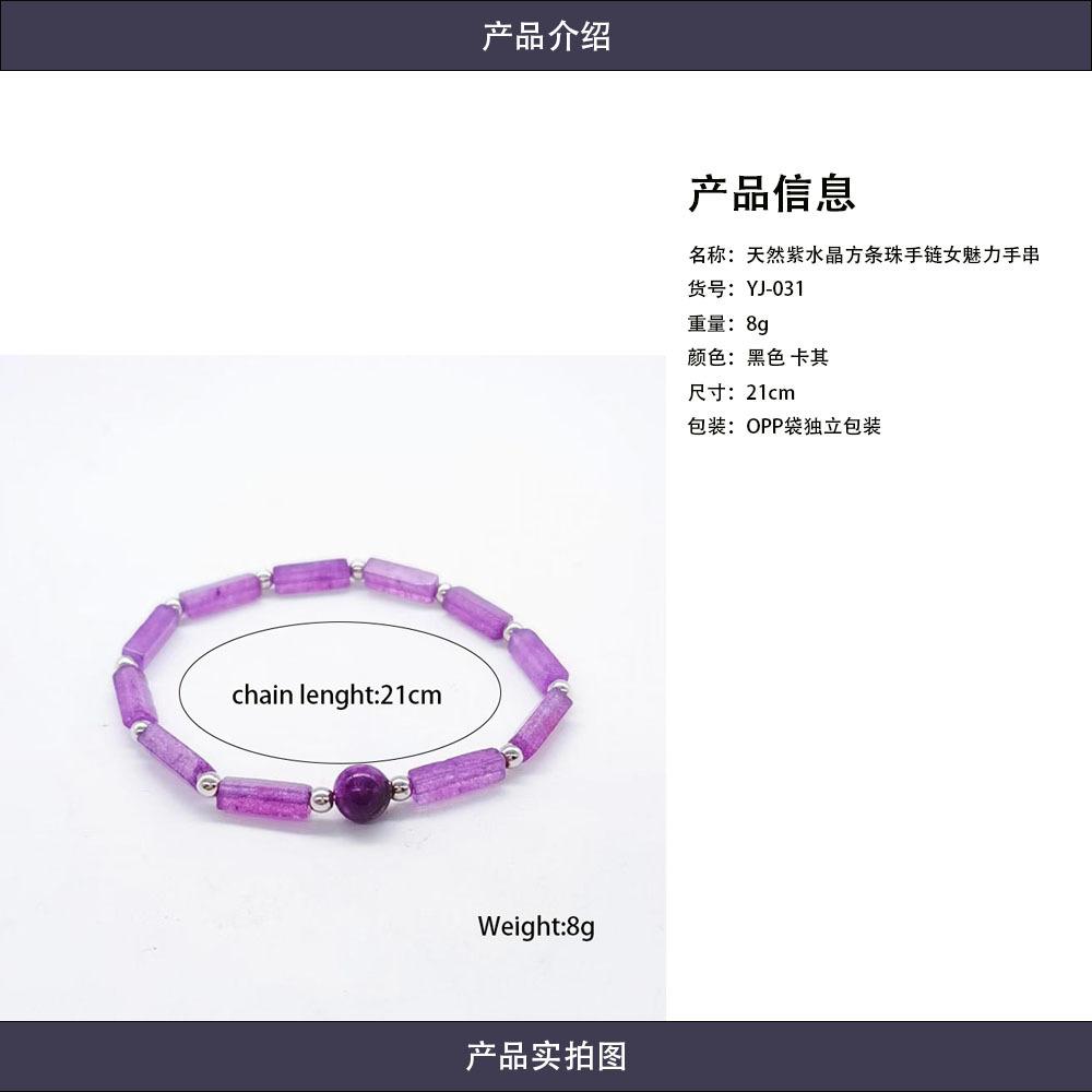 Compra Amazon transfronterizo nuevo brazalete de cuentas cuadradas de amatista natural para mujer, brazalete de encanto de moda simple, venta al por mayor de comercio exterior al por mayor en Joom.pro