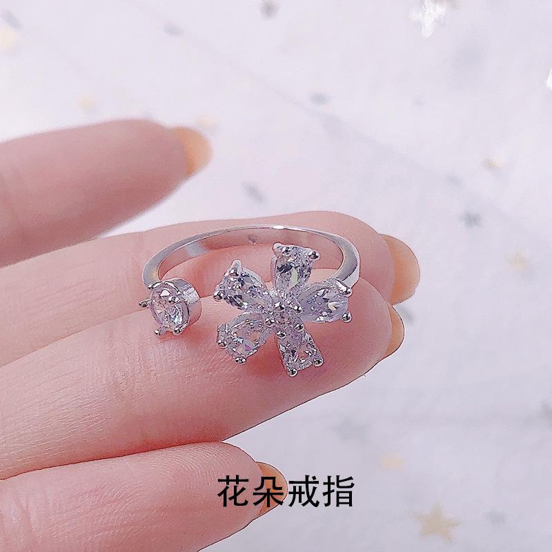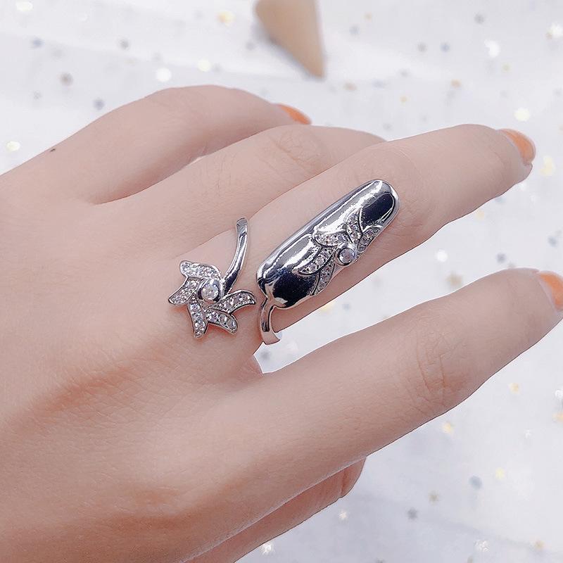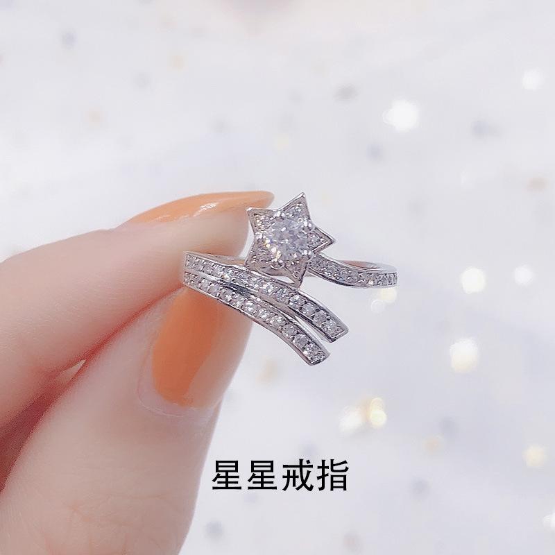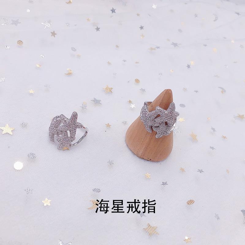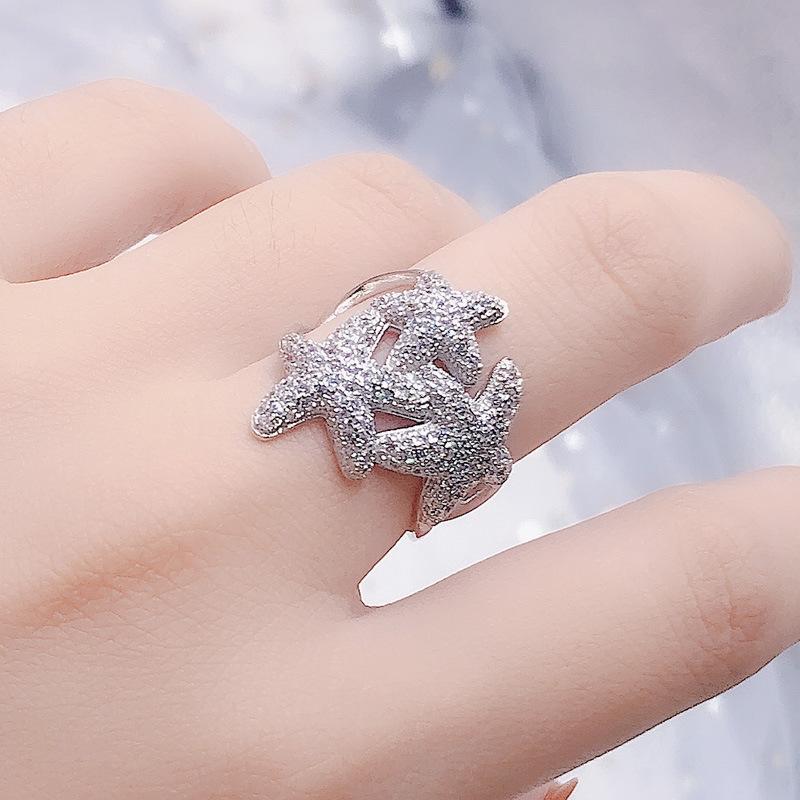 Diamond Ring, Starfish Ring, Couple's Ring, Small Seaweed Flower Ring, Double-row flash diamond ring, Nail Cov...