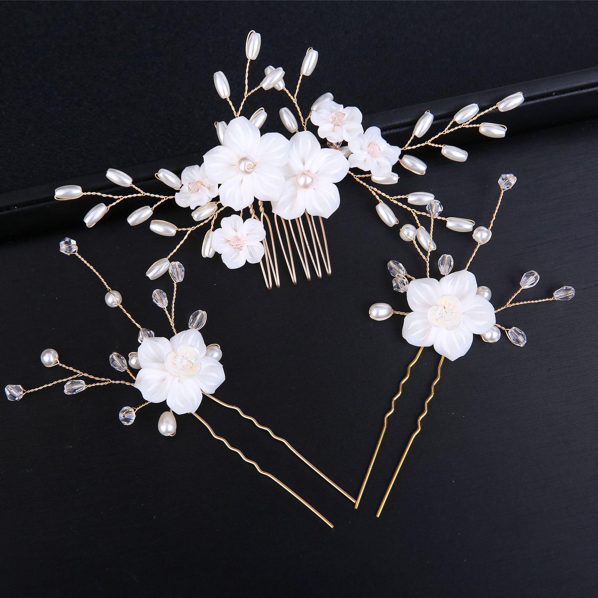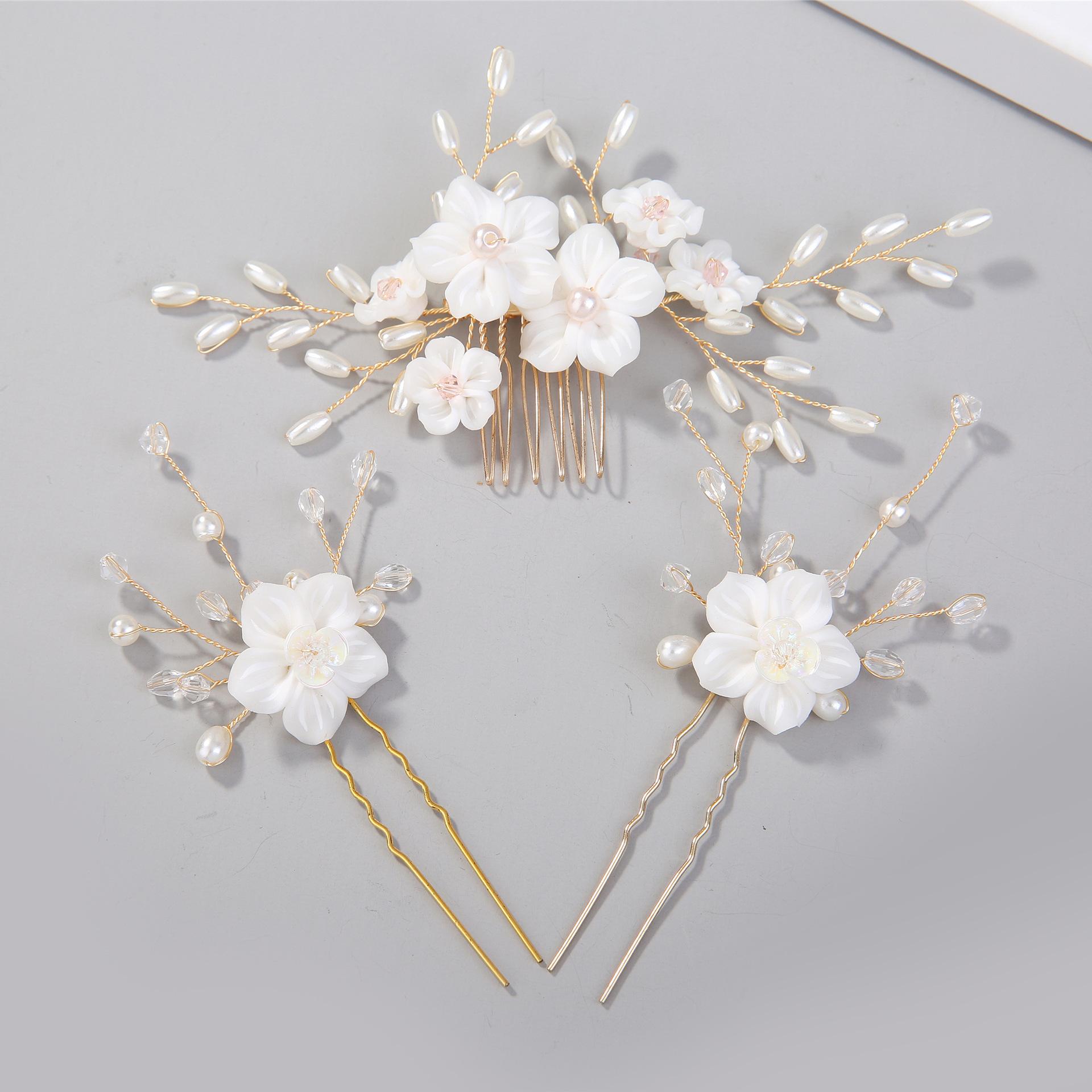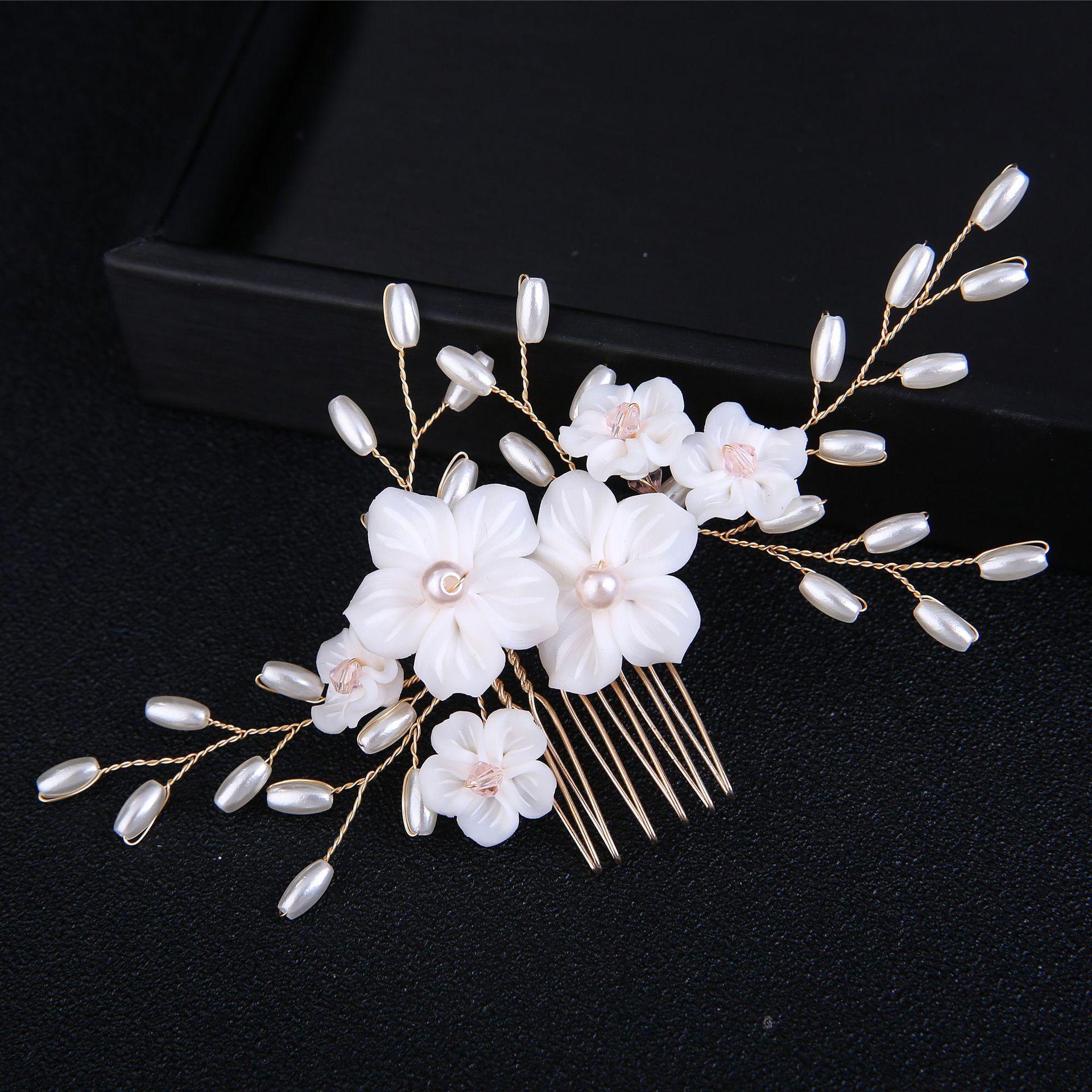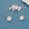 Tocado de novia coreano para boda, flor blanca, hecho a mano, con perlas trenzadas, peine para el cabello, accesorios para el cabello con aguja, explosión transfronteriza