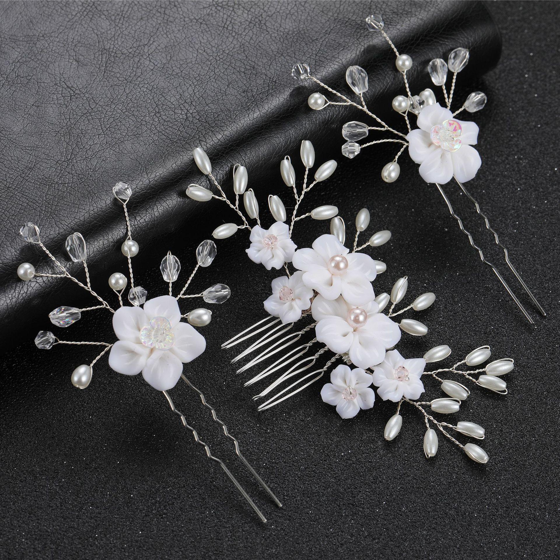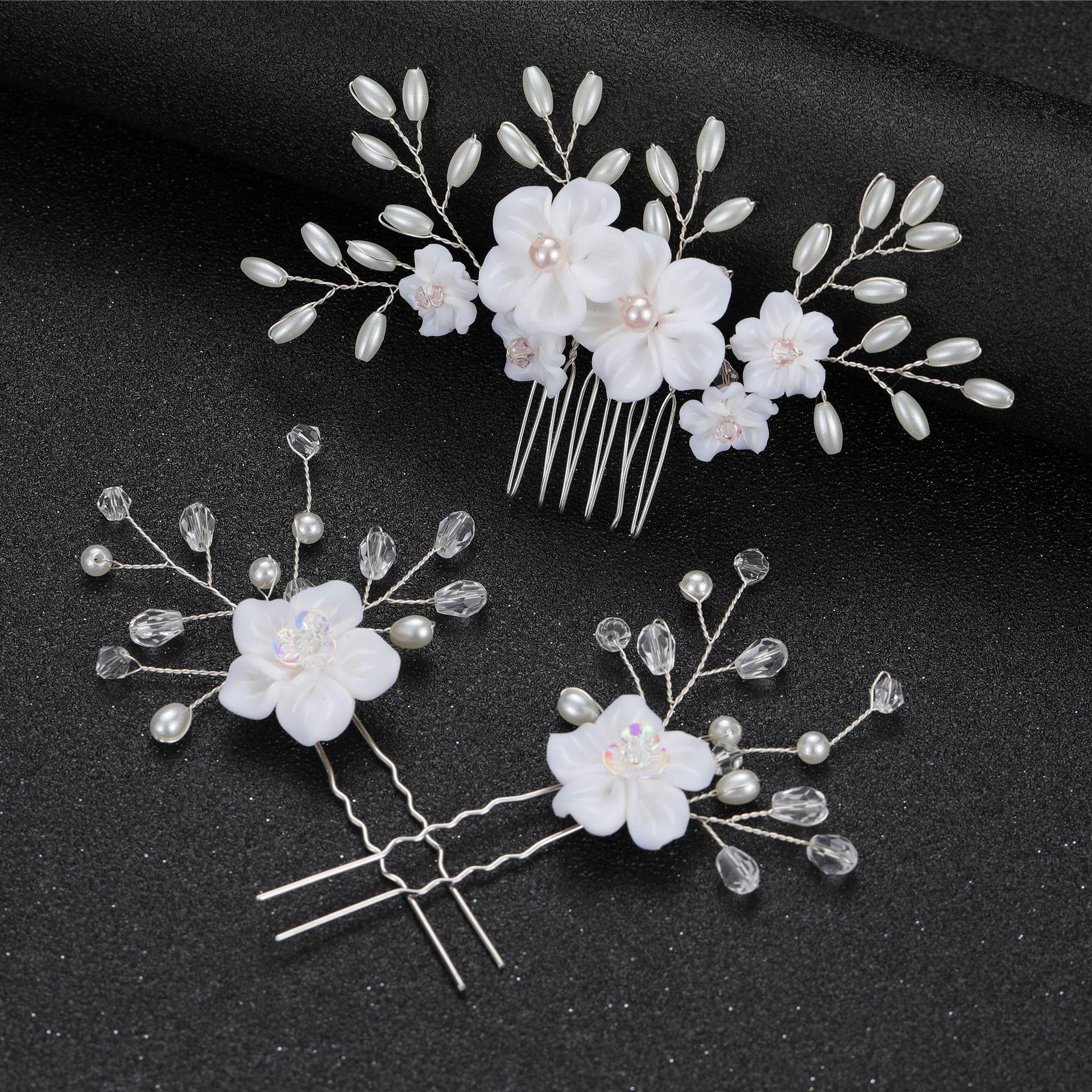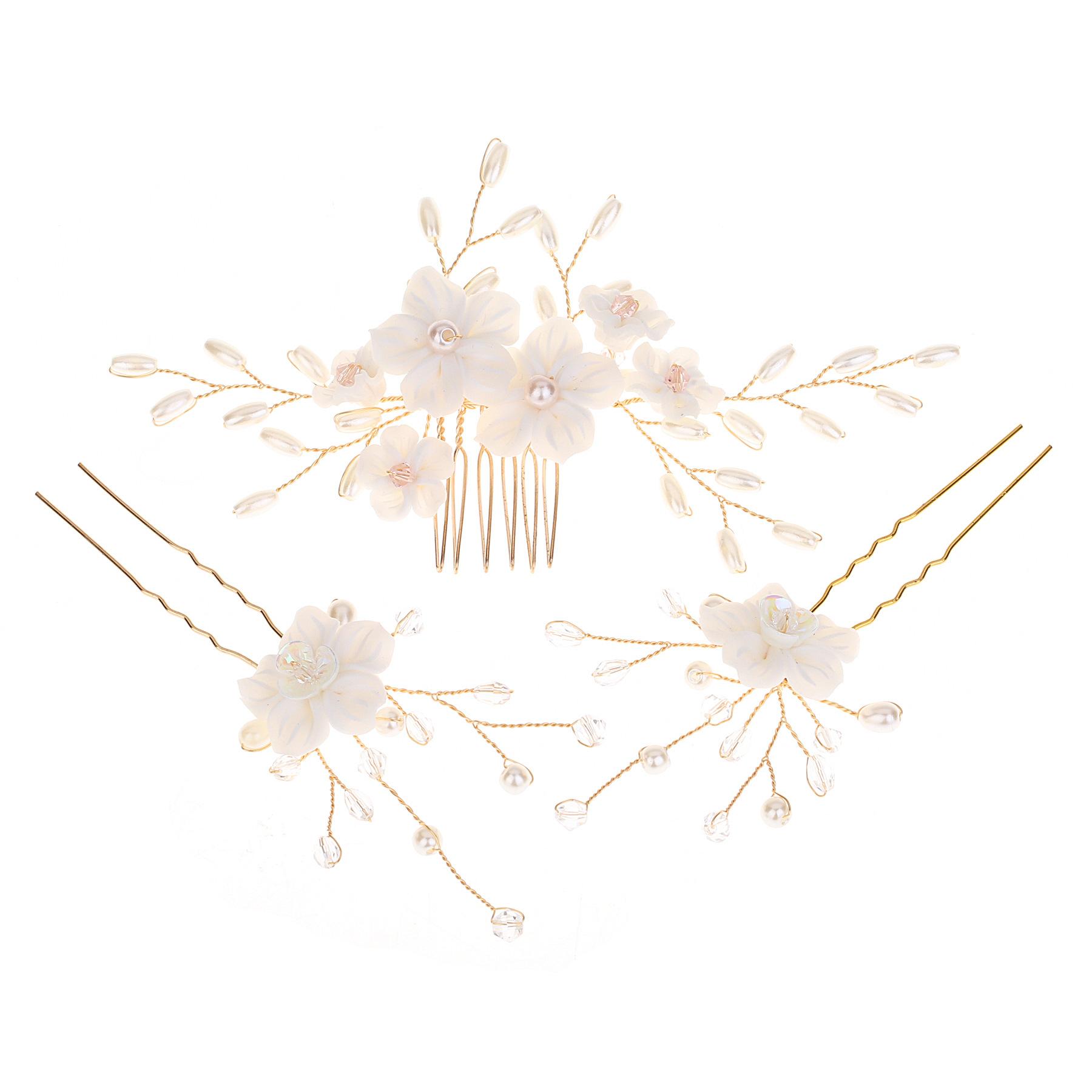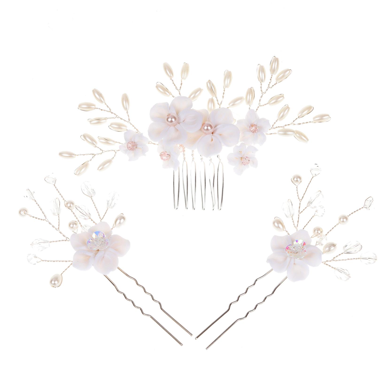 Tocado de novia coreano para boda, flor blanca, hecho a mano, con perlas trenzadas, peine para el cabello, accesorios para el cabello con aguja, explosión transfronteriza