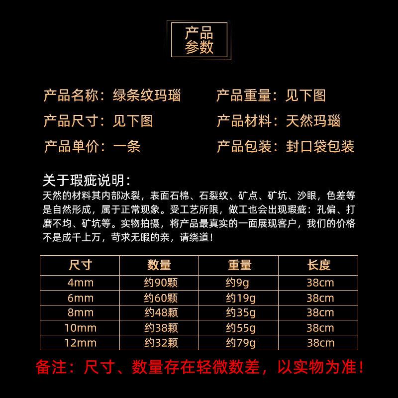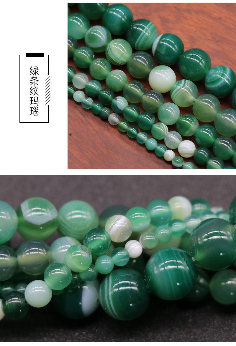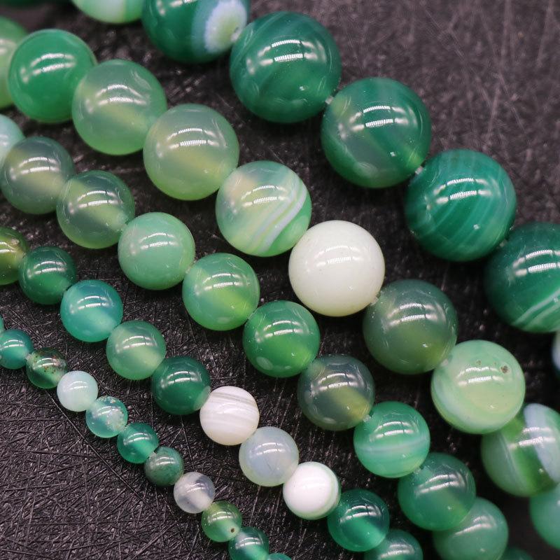 380-Ágata Rayada Verde Cuentas Redondas Cuentas Sueltas DIY Pulsera de Cuentas Collar Accesorios de Joyería Productos Semiterminados Venta al por Mayor