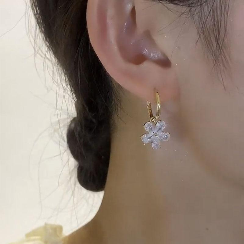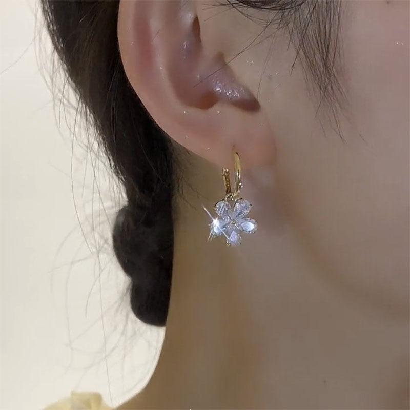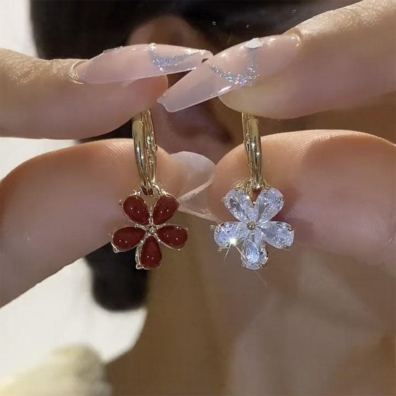 Pendientes de circonita con incrustaciones de flores de color asimétrico con diseño de nicho, temperamento que combina con todo, pendientes finos para mujer
