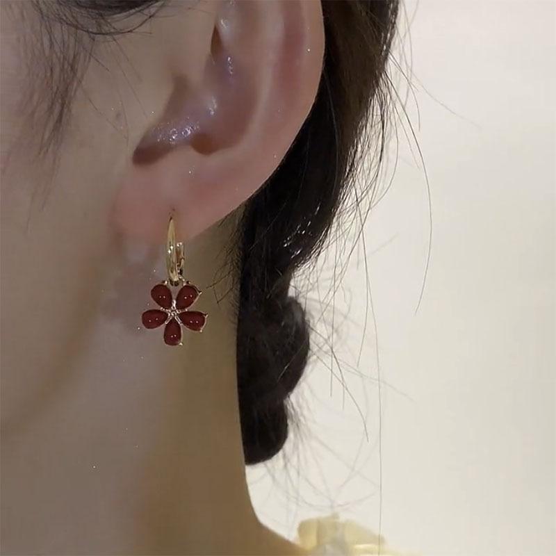 Gold red zircon ear buckle