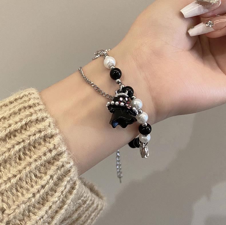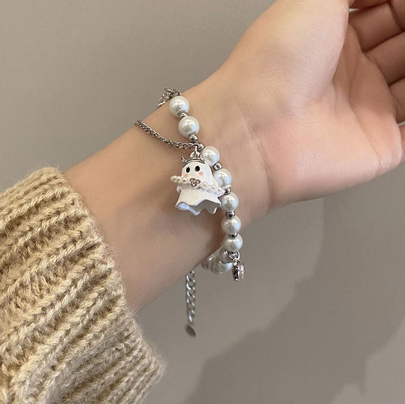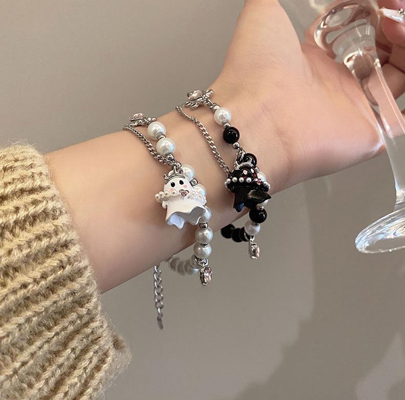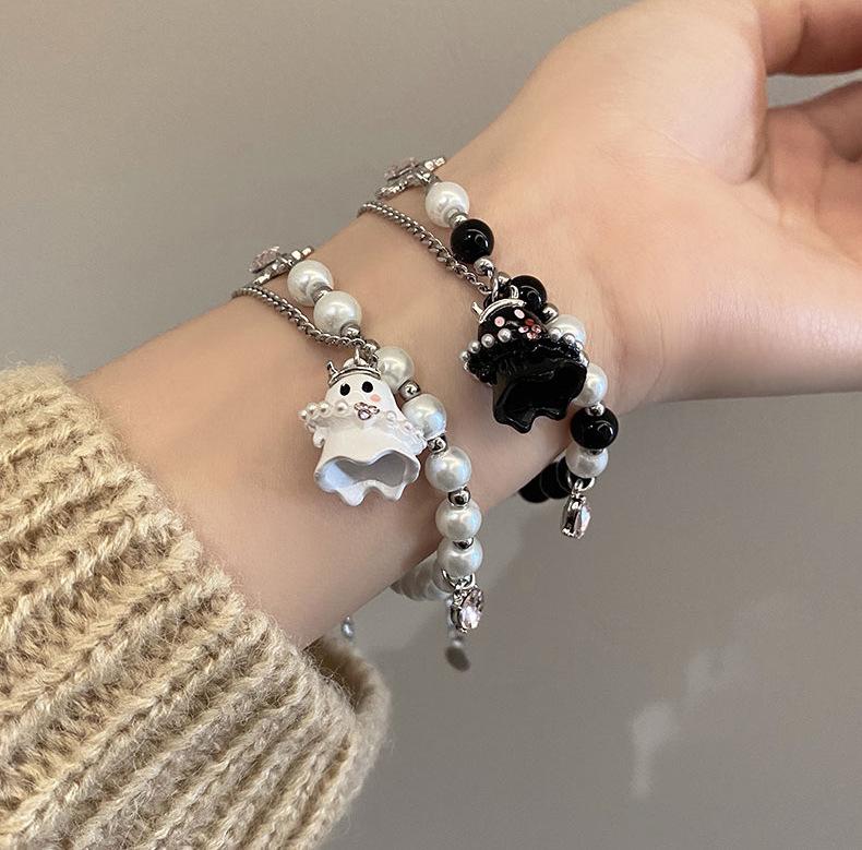 Pulsera de cuentas fantasma en blanco y negro para mujer, accesorios para novia, estilo frío, avanzado, dulce, genial, sexy, hip-hop.