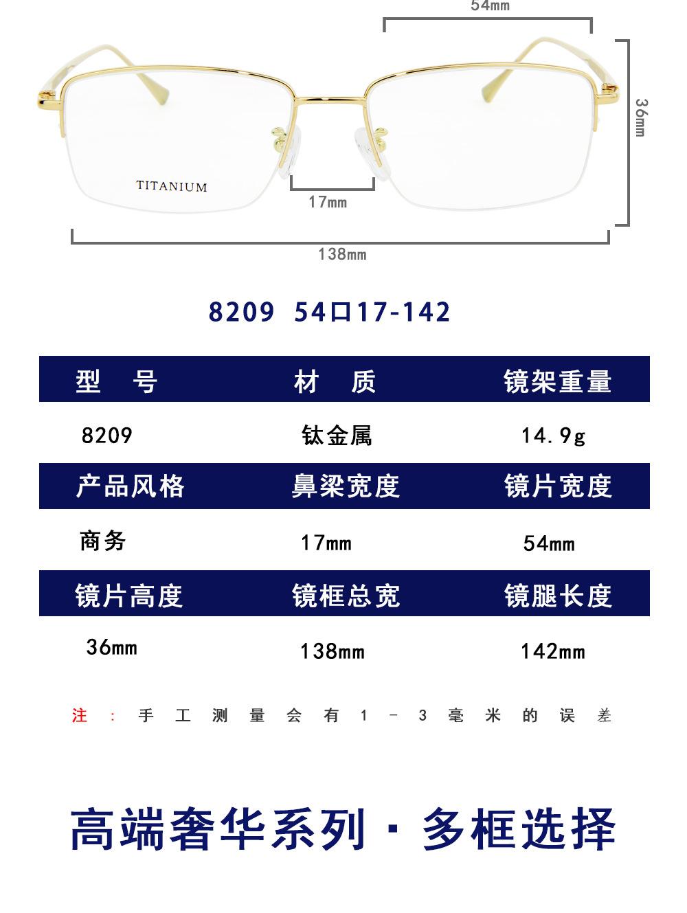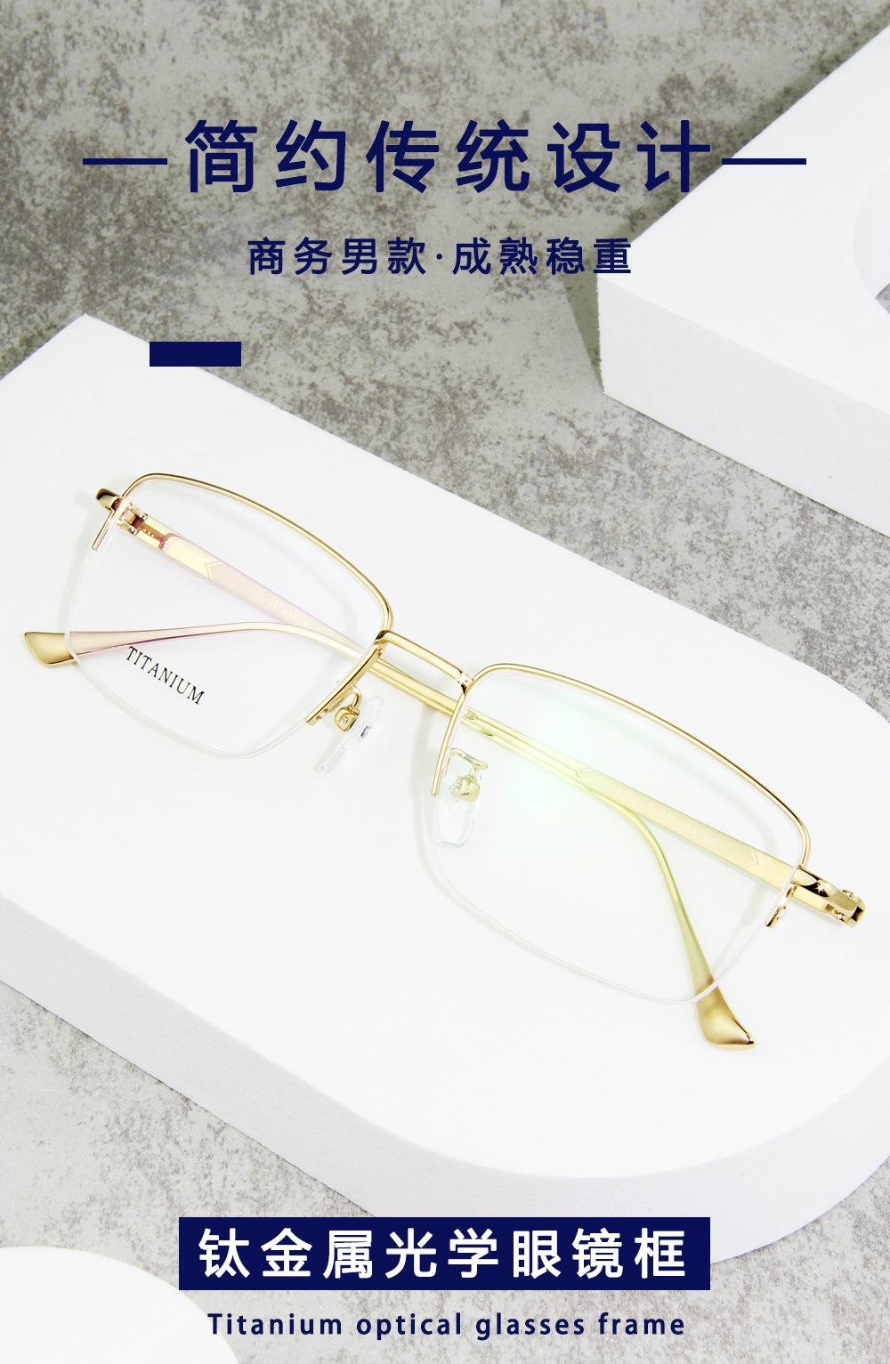 Gafas ultraligeras de titanio, montura de gafas de negocios, montura de media montura, montura para miopía, gafas para presbicia con luz azul, montura de negocios para hombres