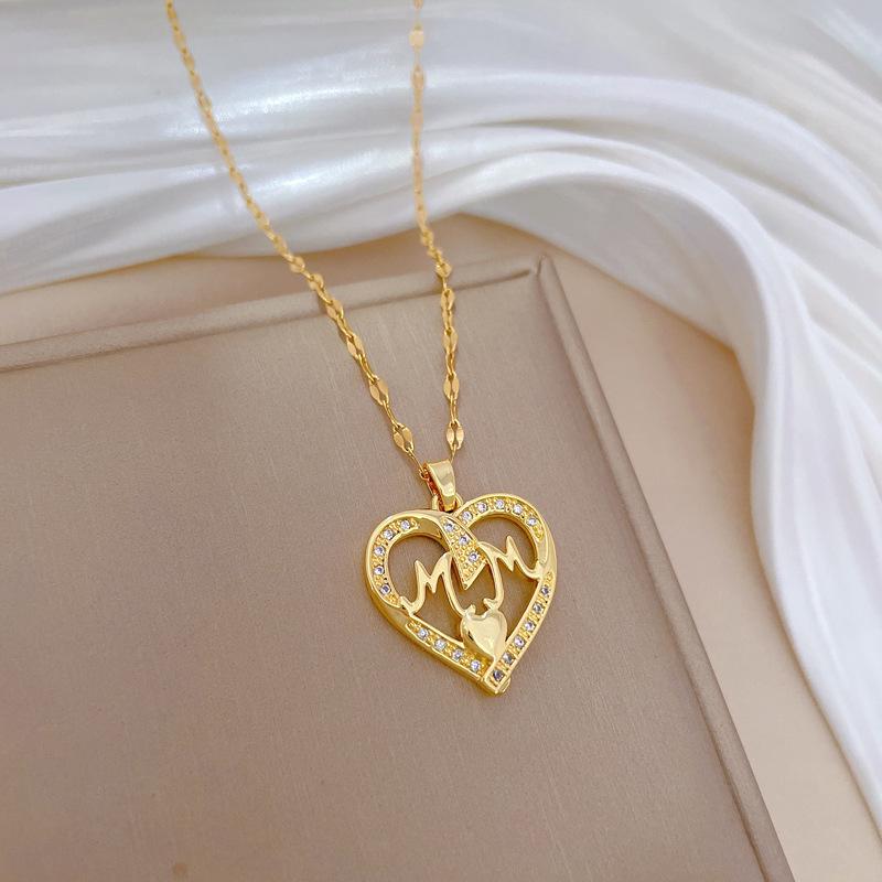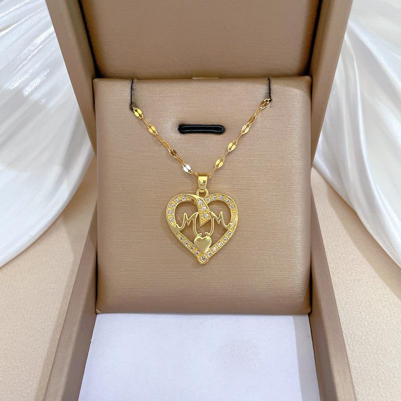 [Acero titanio] Collar de diamantes con un temperamento lujoso y ligero, con forma de corazón y amor, para mujer, cadena de clavícula que combina con todo, cadena de acero titanio.