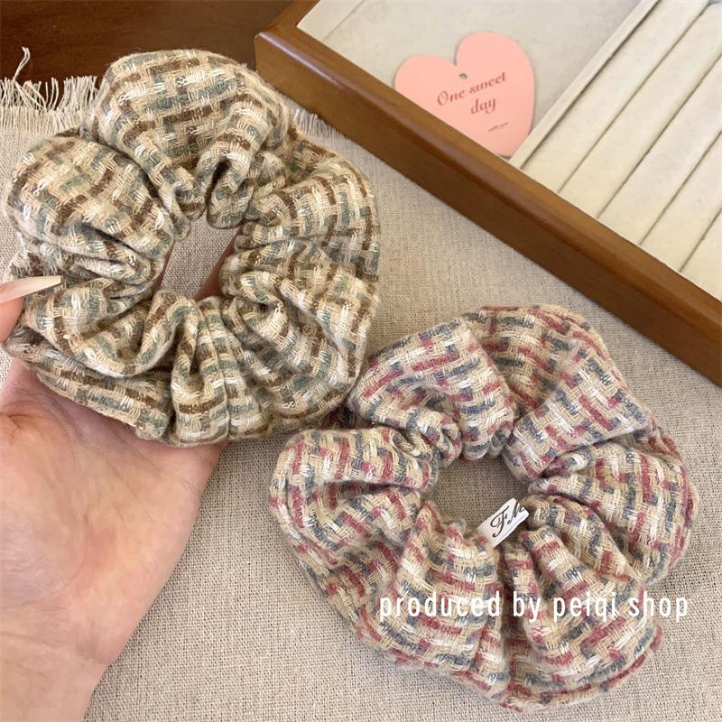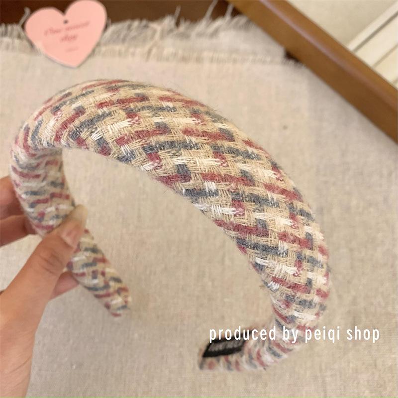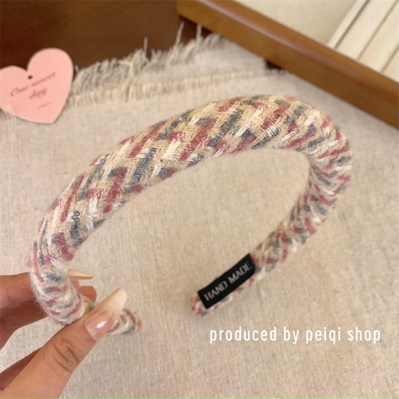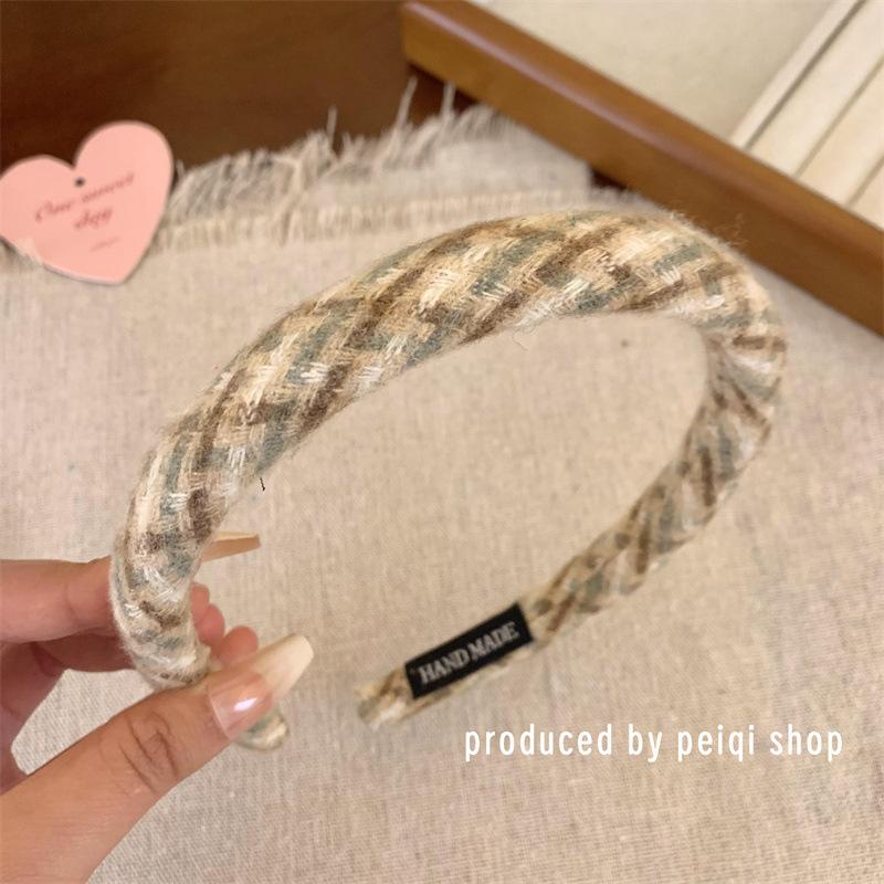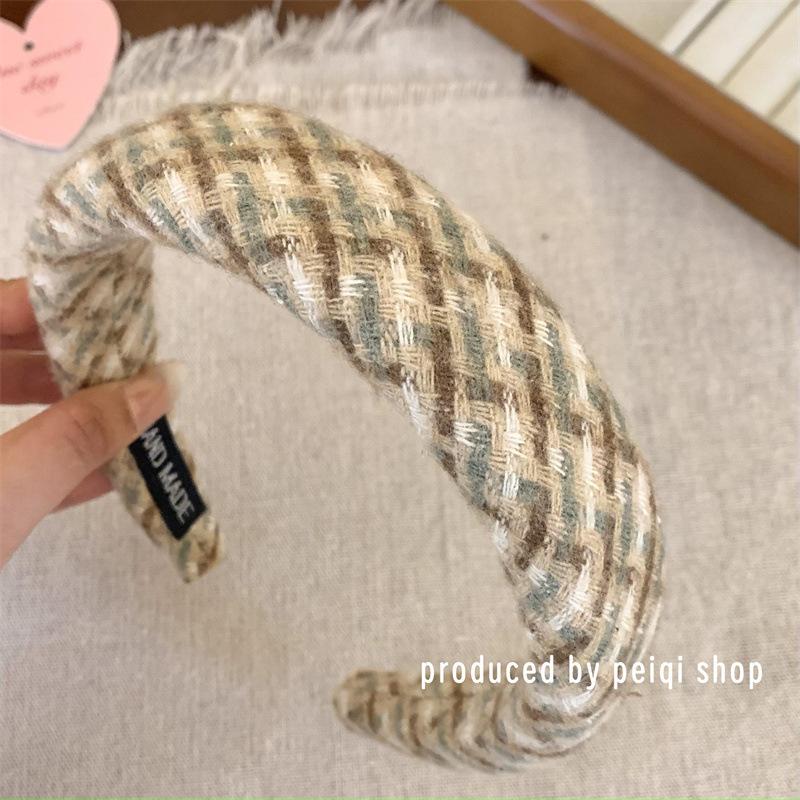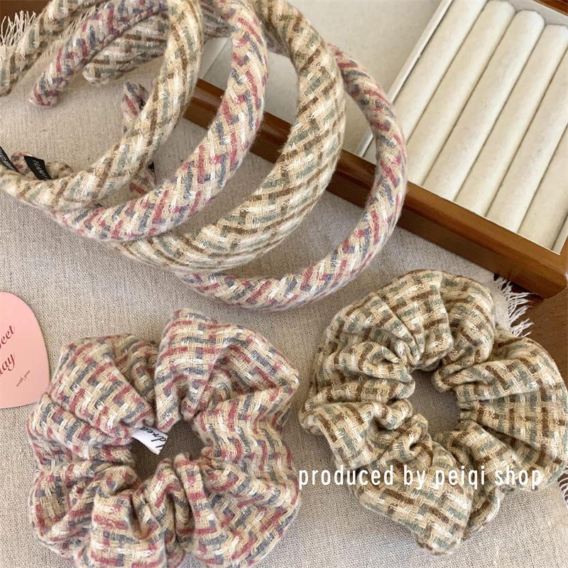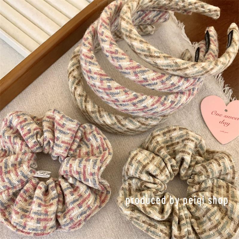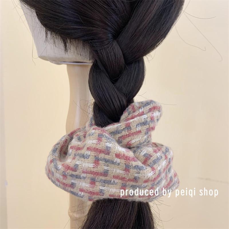 Diadema a cuadros de fresa y menta para mujer, sencilla, tipo anillo de salchicha, anillo para el cabello de Corea del Sur, diadema tipo intestino grueso, accesorios para el cabello, adorno para la cabeza
