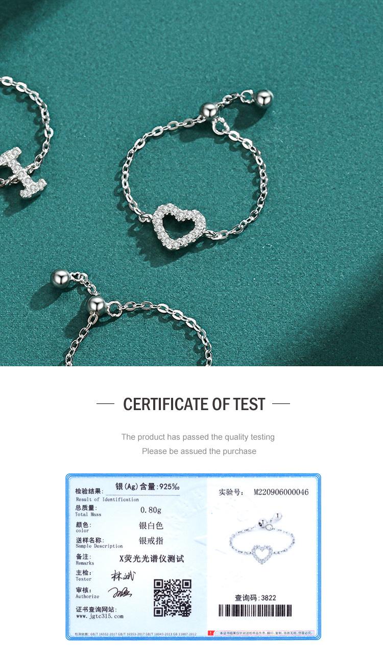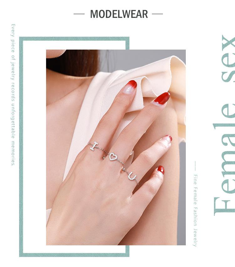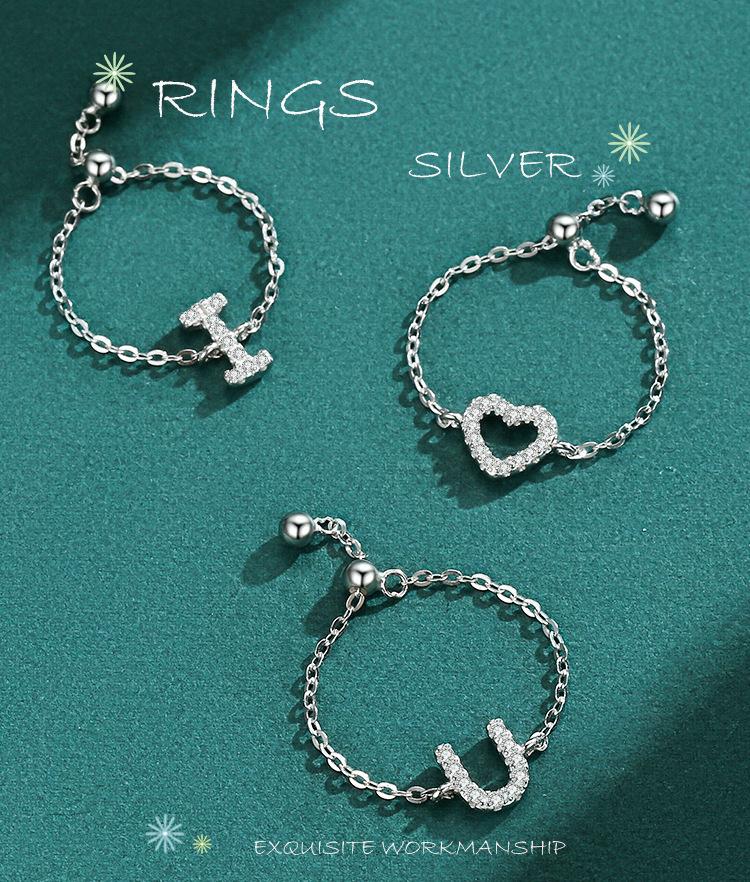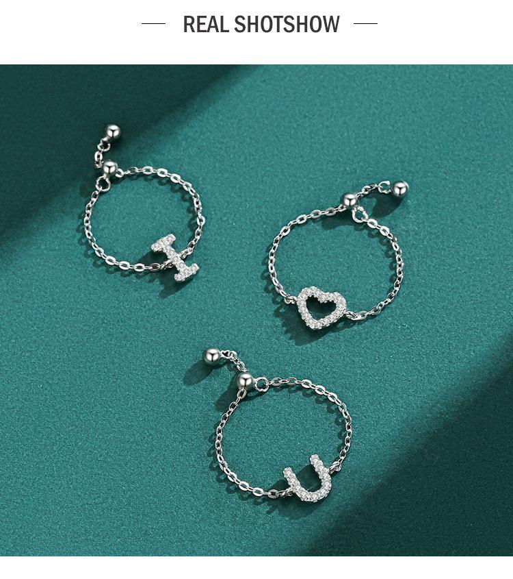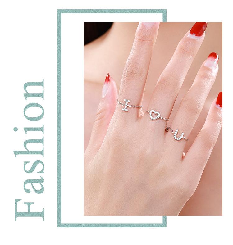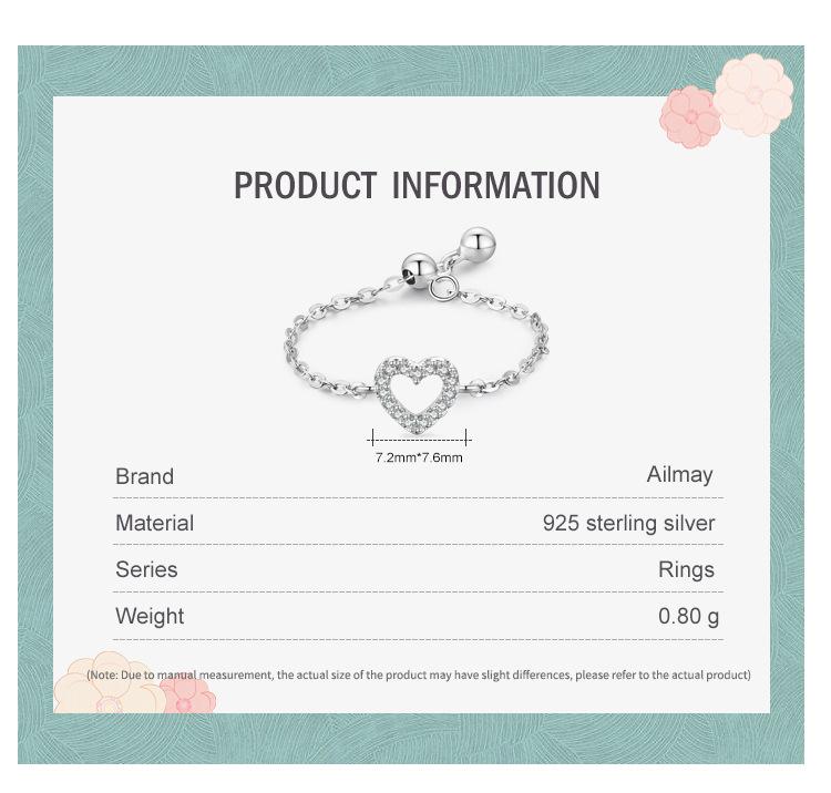 Anillo de cadena en forma de corazón de plata s925, moda femenina, diseño de nicho transfronterizo europeo y americano, anillo fino de amor, moda al por mayor