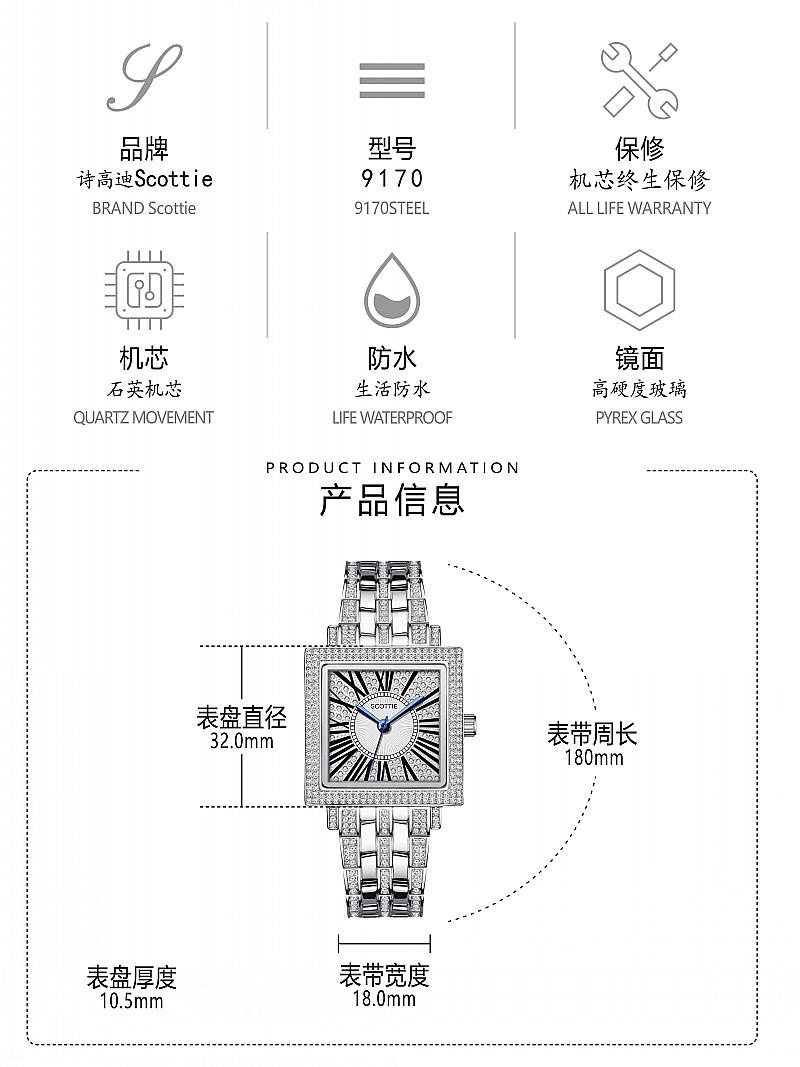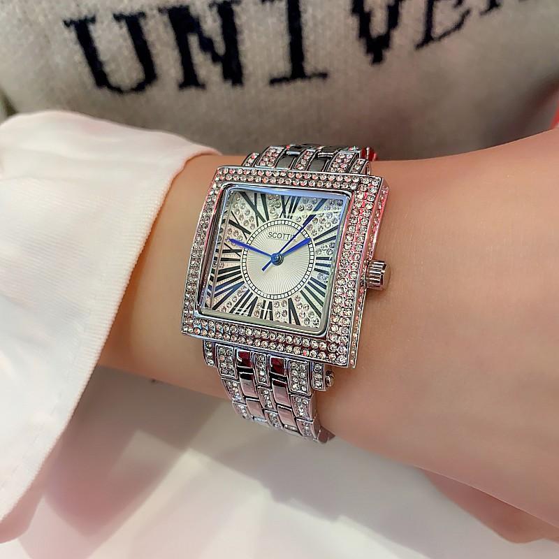 Reloj de cuarzo Shigaodi Luxury 2024, nuevo, de alta calidad y con estrellas, para mujer, con esfera cuadrada y resistente al agua.