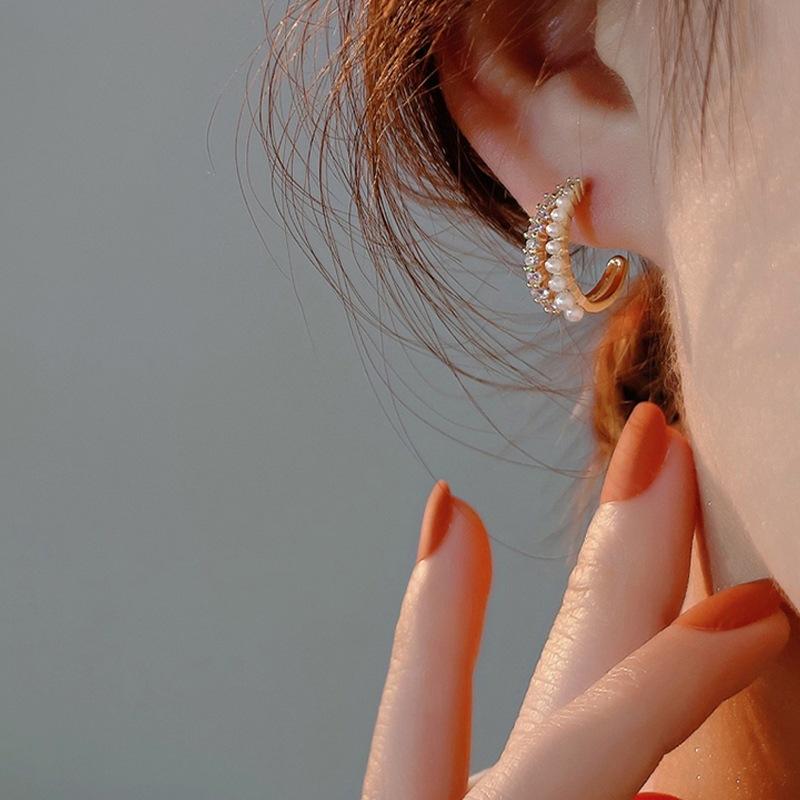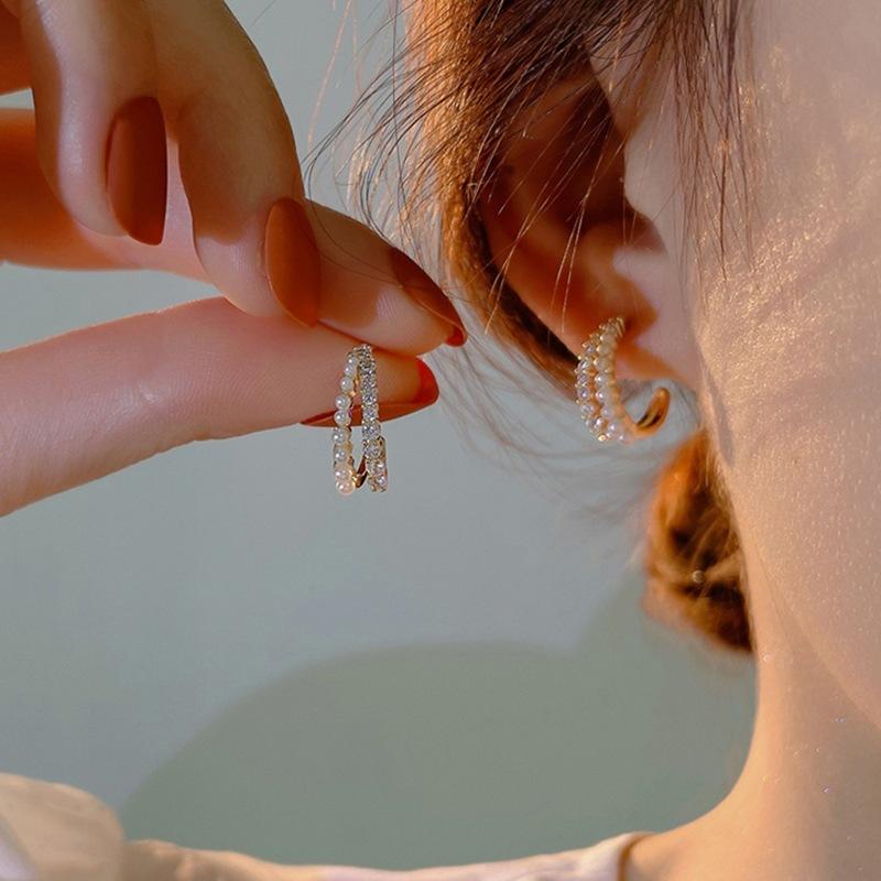 Pendientes elegantes de nicho con doble perla en forma de C, de celebridades de Internet, 2022, nuevos pendientes de lujo ligeros y de alta gama que combinan con todo para mujer.