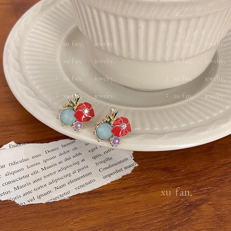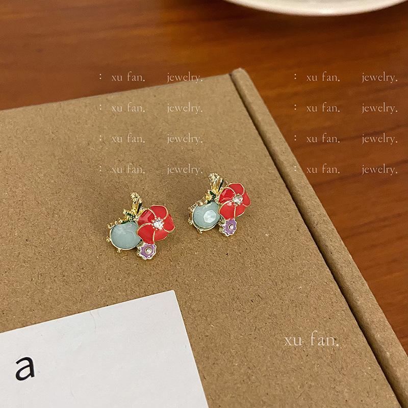2023 Nuevos pendientes de flores con esmalte de gota, diseño de nicho femenino, pendientes de alta calidad, mini pendientes pequeños, exquisitos y sencillos.