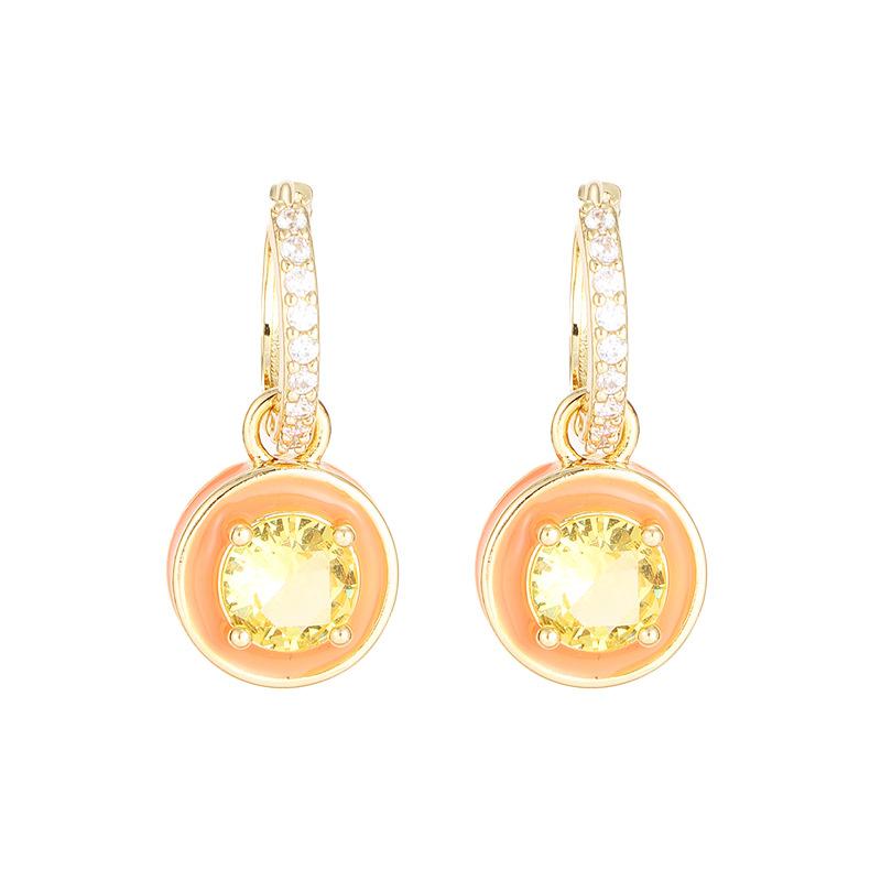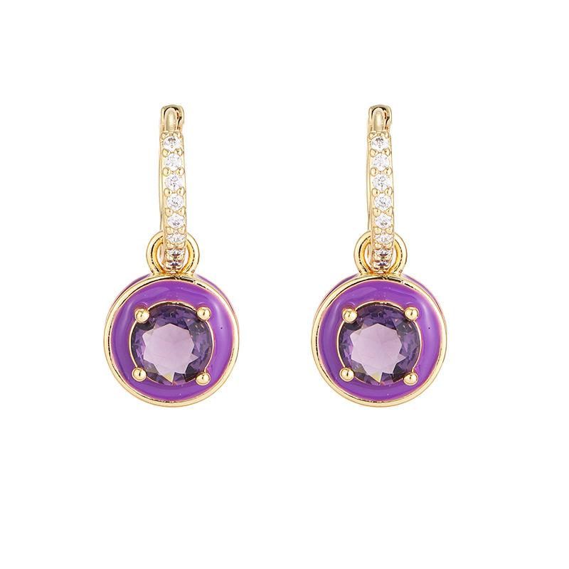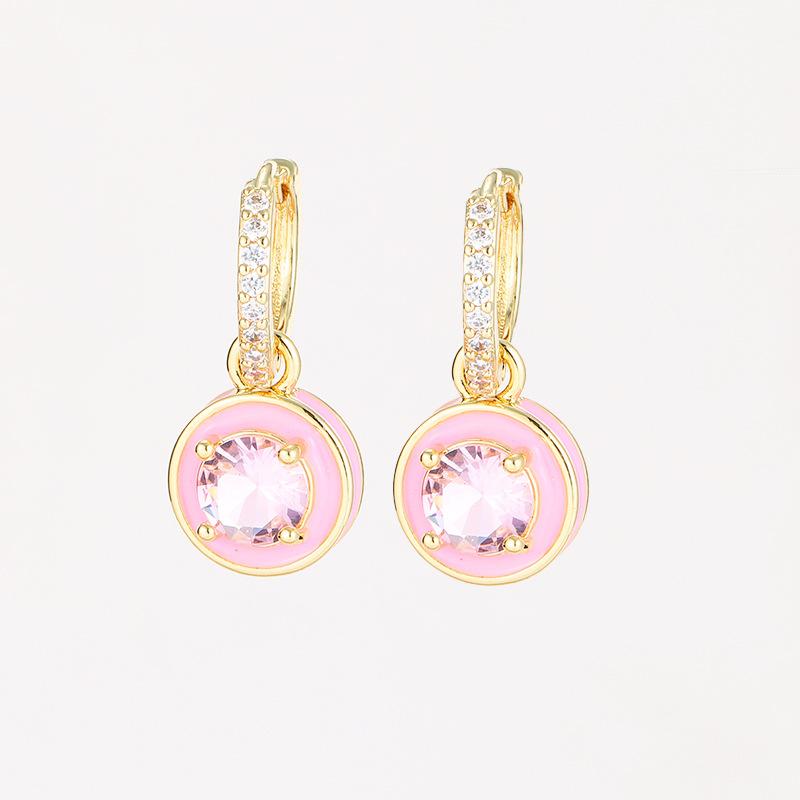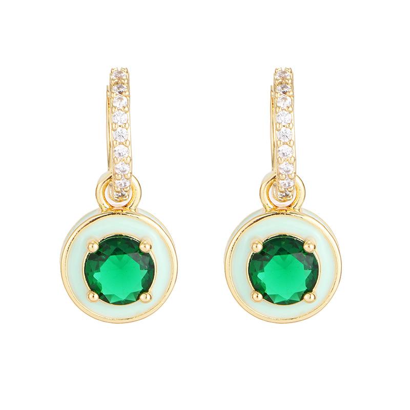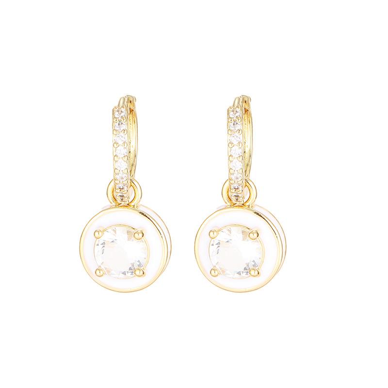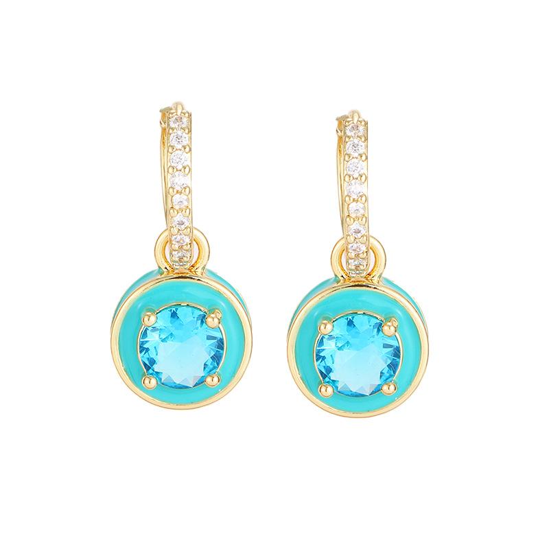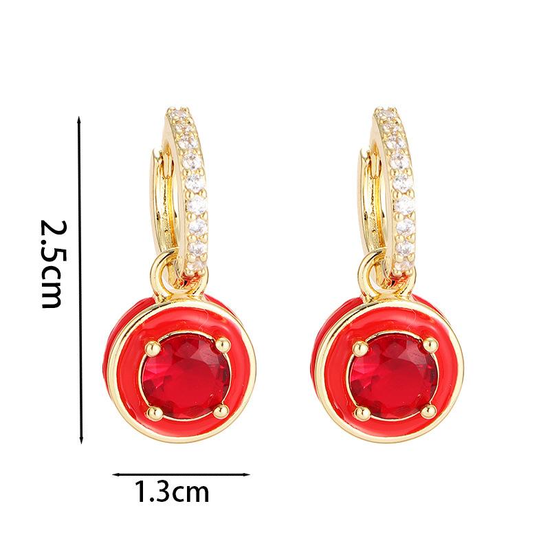 Compra Nuevos aretes de gota de aceite de color de diamante redondo de moda europea y americana, chapado en oro real, estilo INS, aretes simples y frescos para mujer al por mayor en Joom.pro