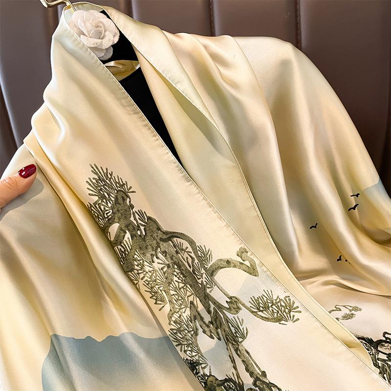 Nueva bufanda de seda sintética, toalla de playa, protector solar, chal de verano antiguo, bufanda fina y cálida de seda para mujer, primavera