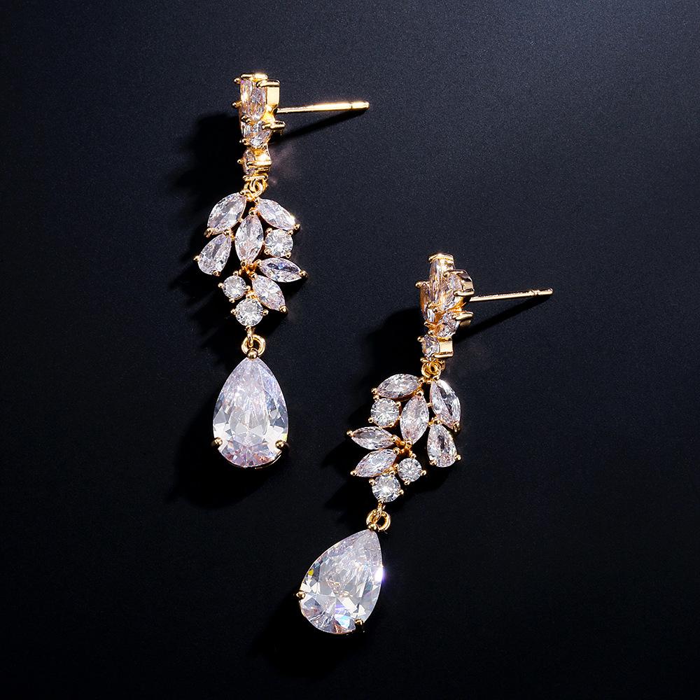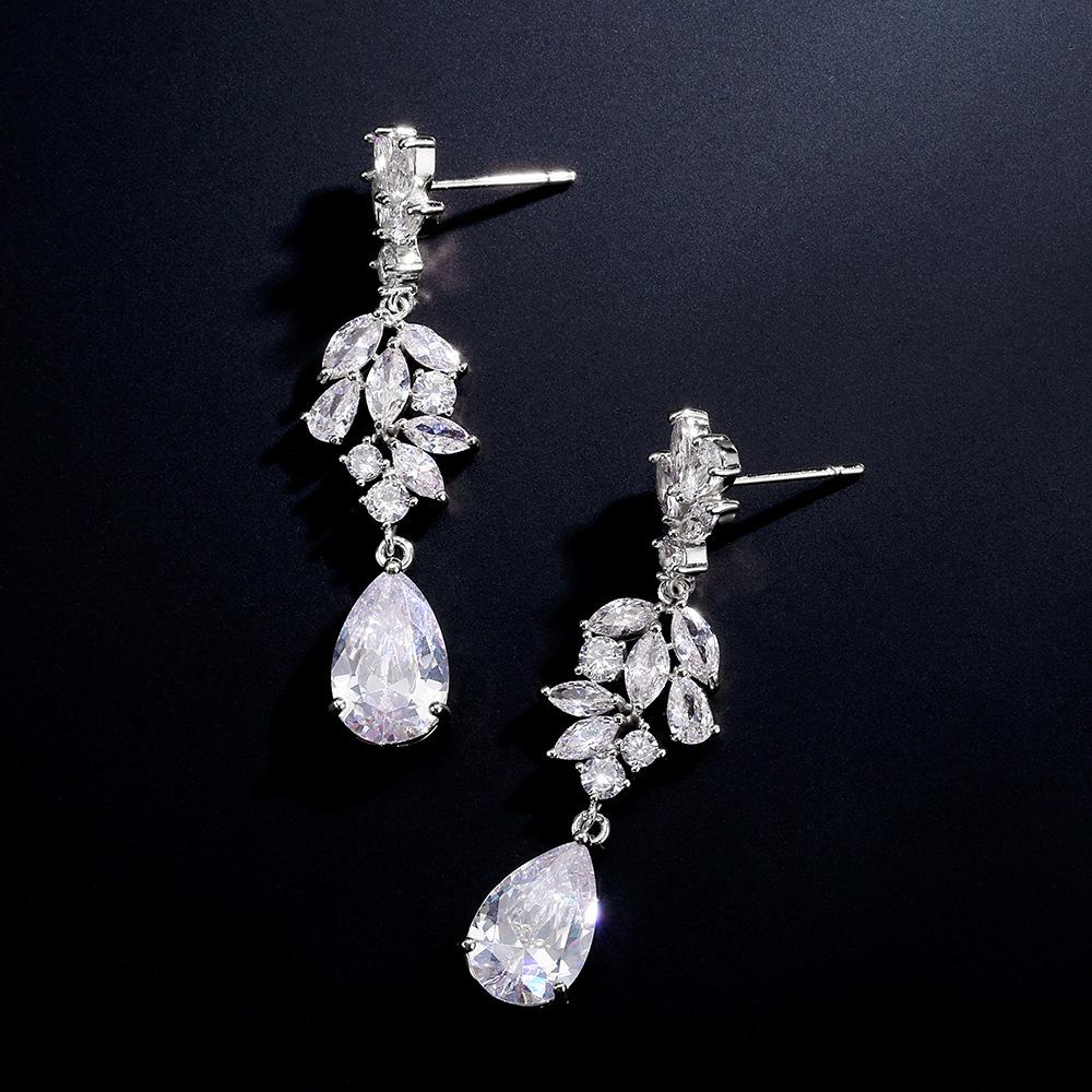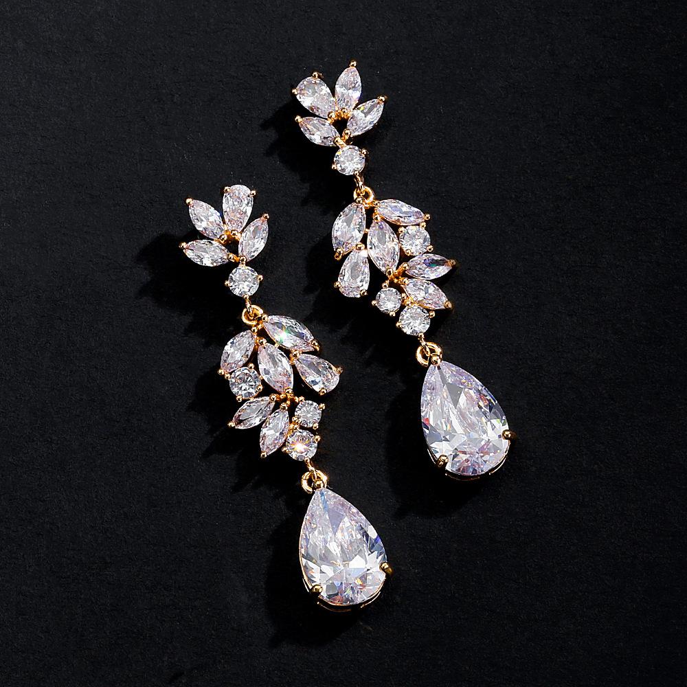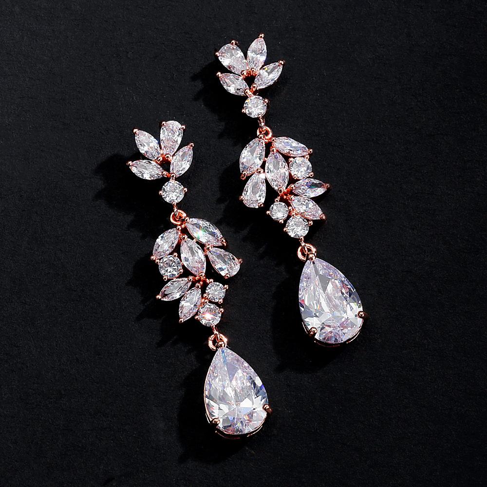 Rakol Fashion Pendientes Clásicos de Circonita en Forma de Gota de Agua para Mujer Europeos y Americanos Pendientes para Vestido de Novia Venta Directa de Fábrica