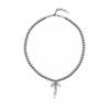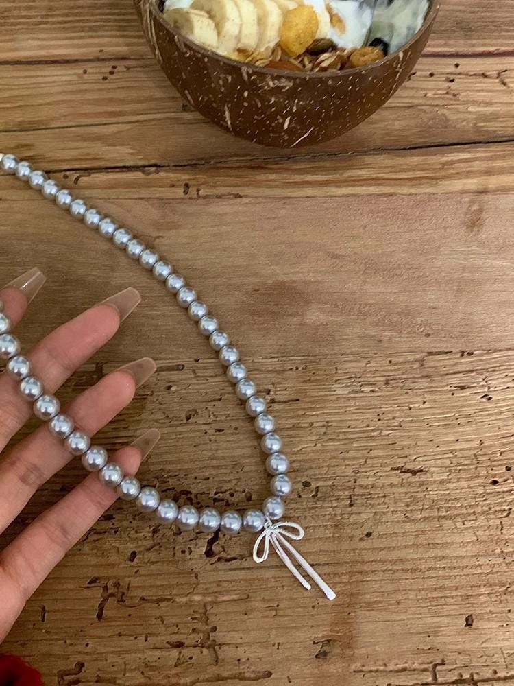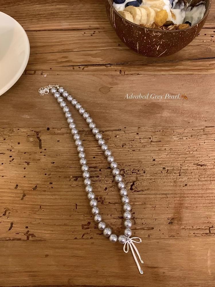 Collar de lazo de perla gris fresca de grado elegante, diseño de cadena de clavícula dulce a la moda, nueva cadena de suéter