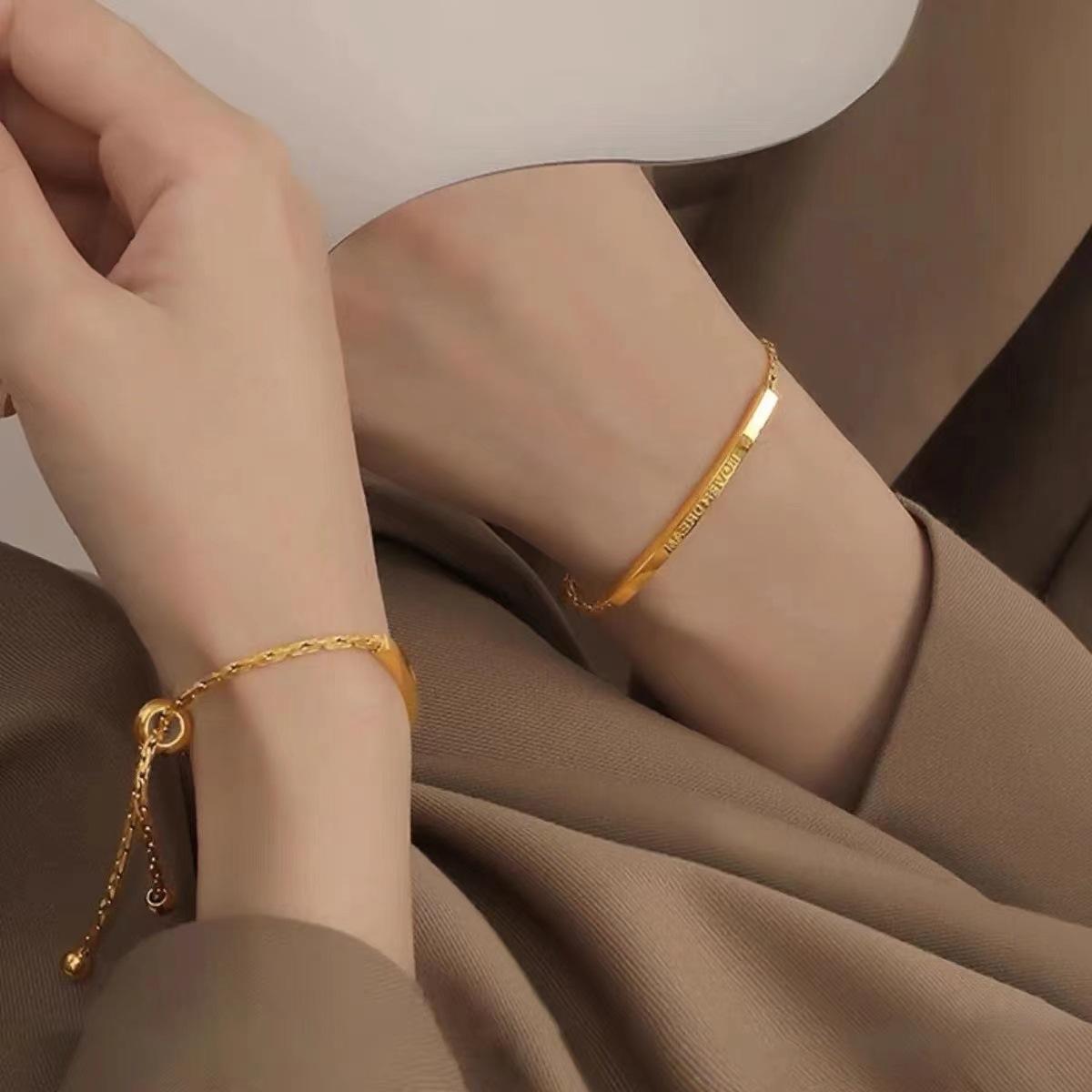 Pulsera de Letras Retro Doradas de Alta Gama para Mujer Verano ins Diseño Nicho Estilo Frío Simple Elegante Pulsera de Novia