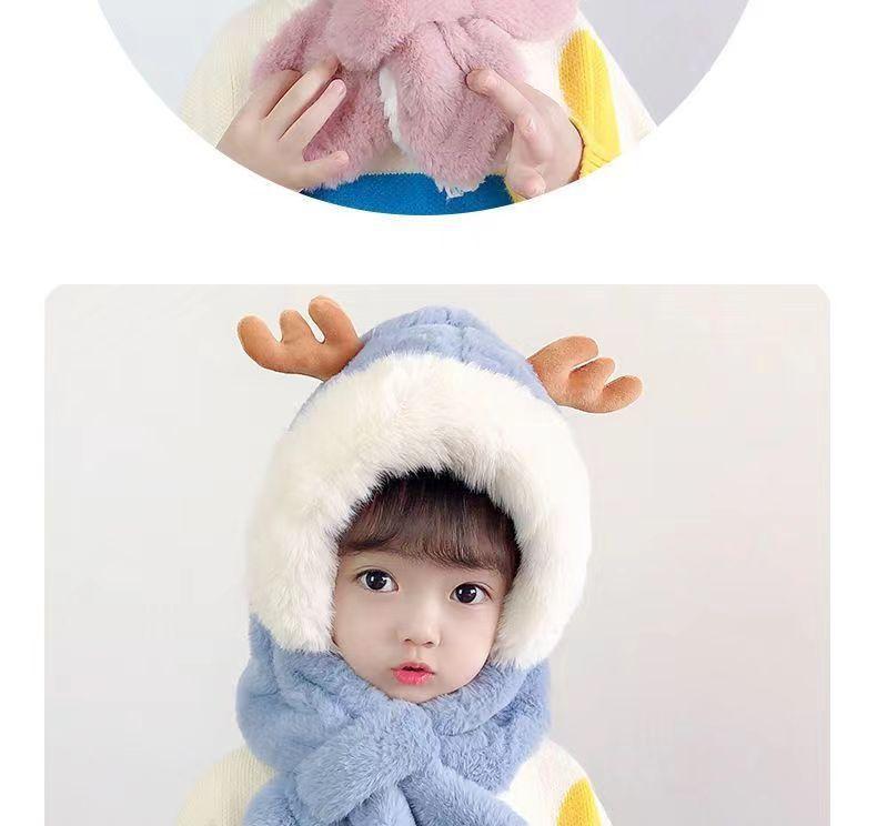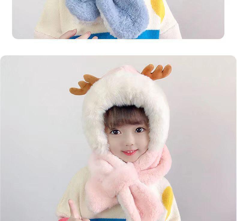 Conjunto de tres piezas de gorro de invierno para niños, guantes de terciopelo para bebés, gorro y bufanda cálidos de invierno súper gruesos para niños y niñas integrados