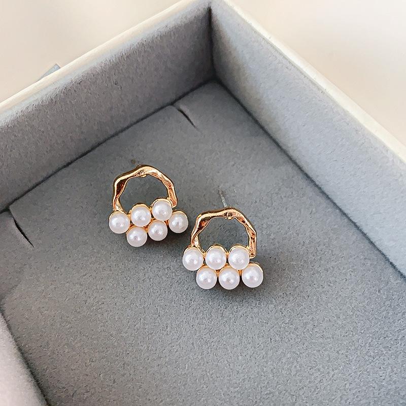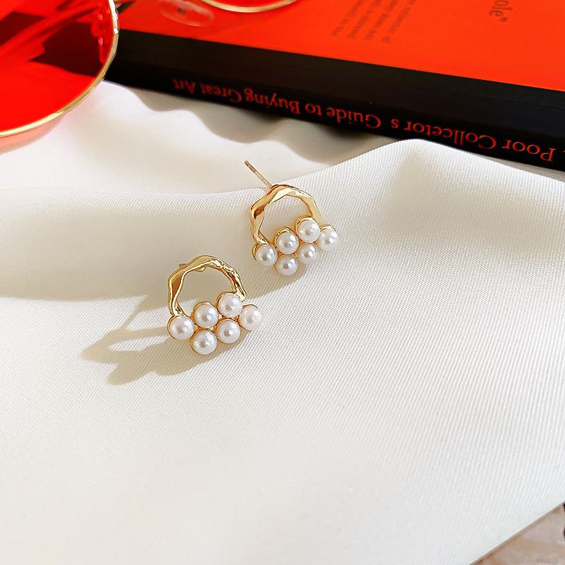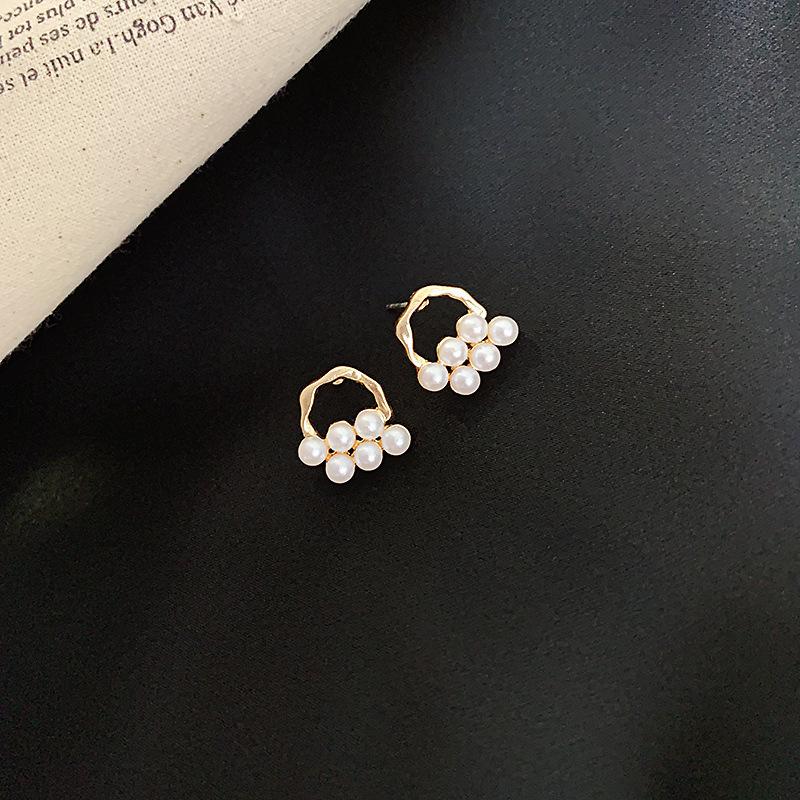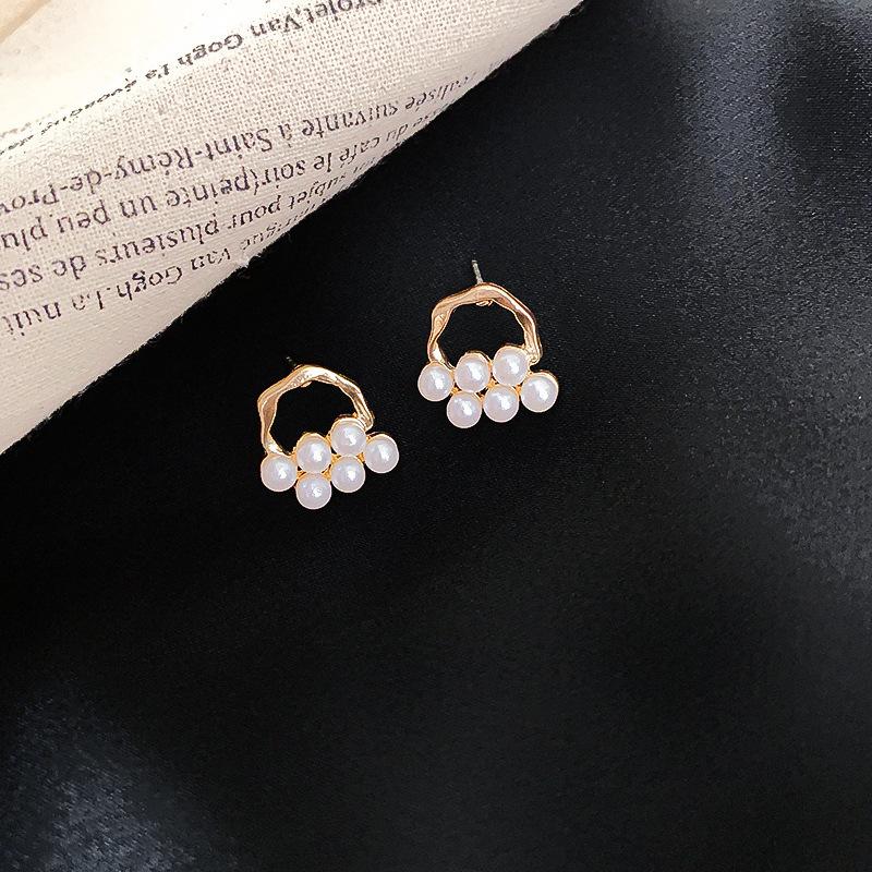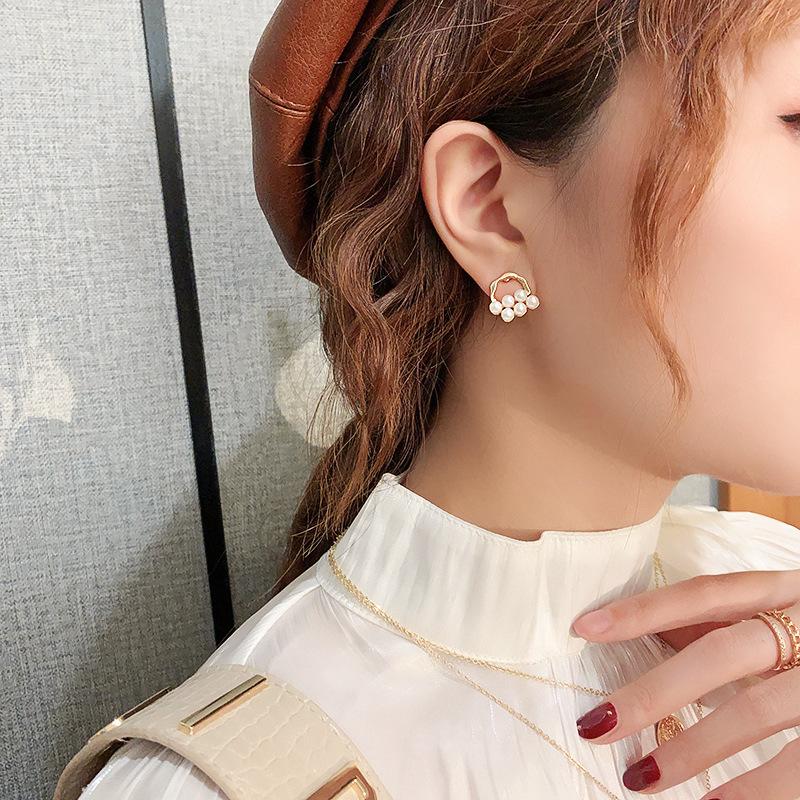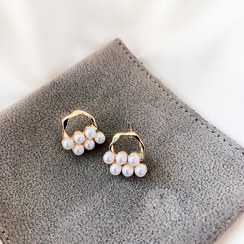 Pendientes de perlas pequeñas de estilo coreano, pendientes de temperamento retro con anillo geométrico hueco, pendientes de temperamento, venta al por mayor