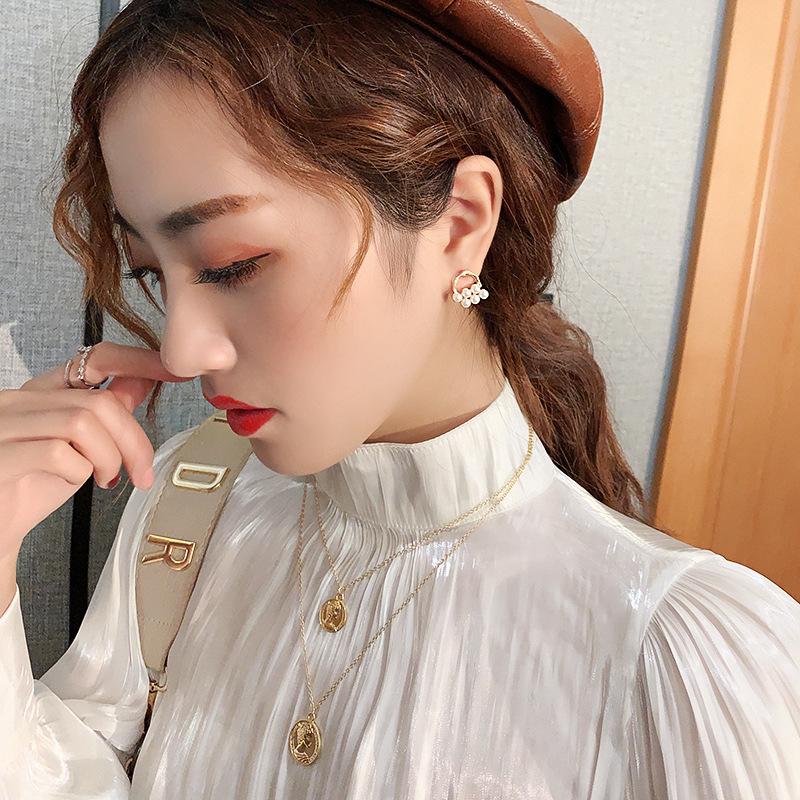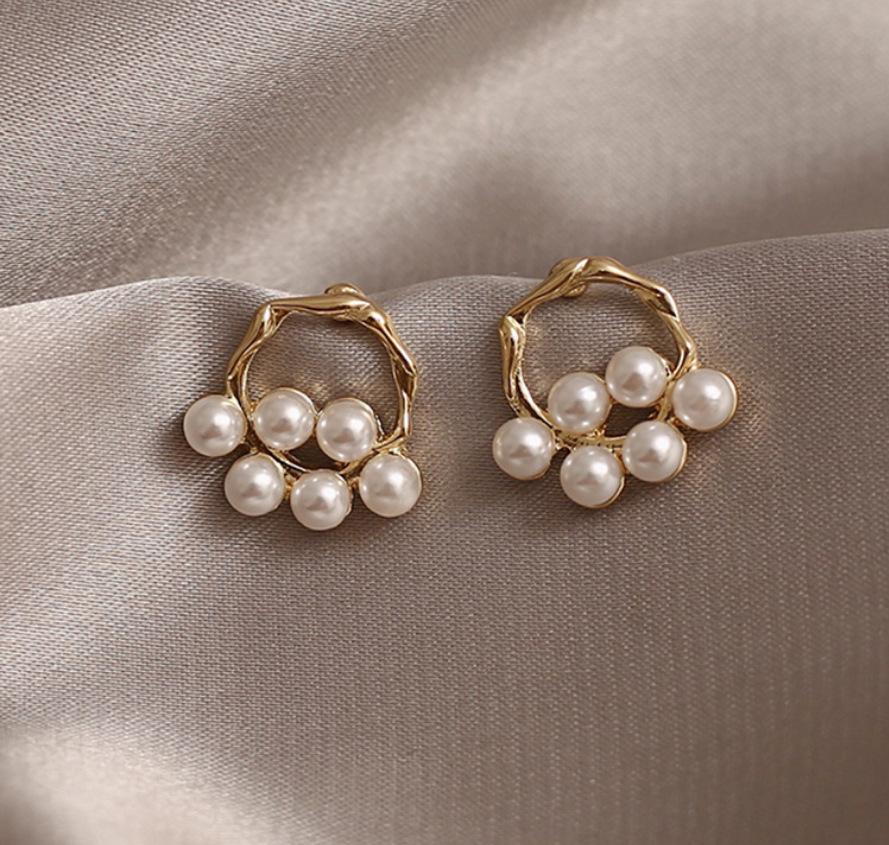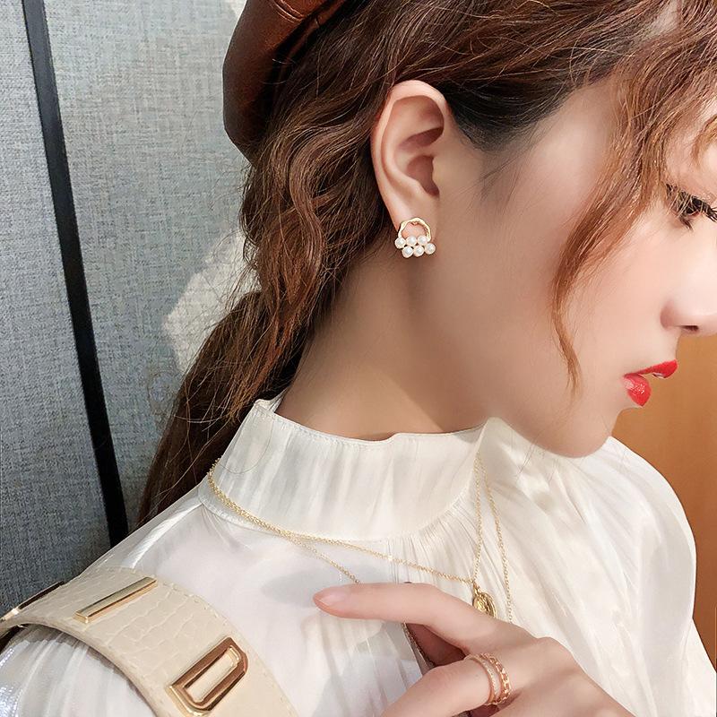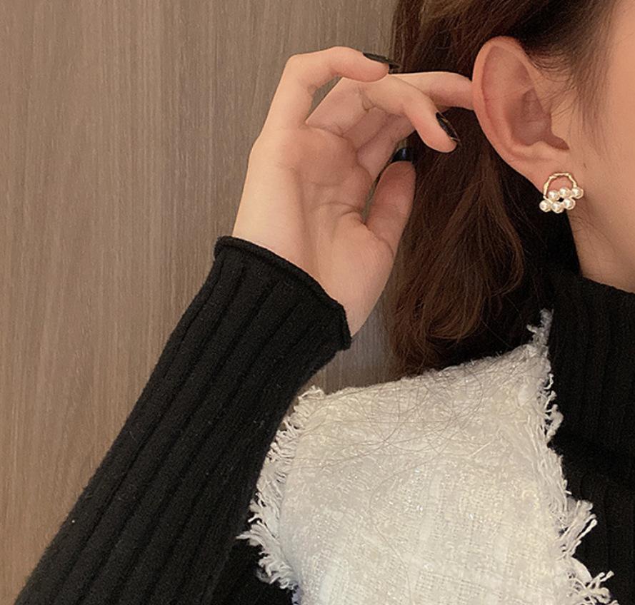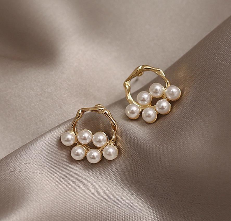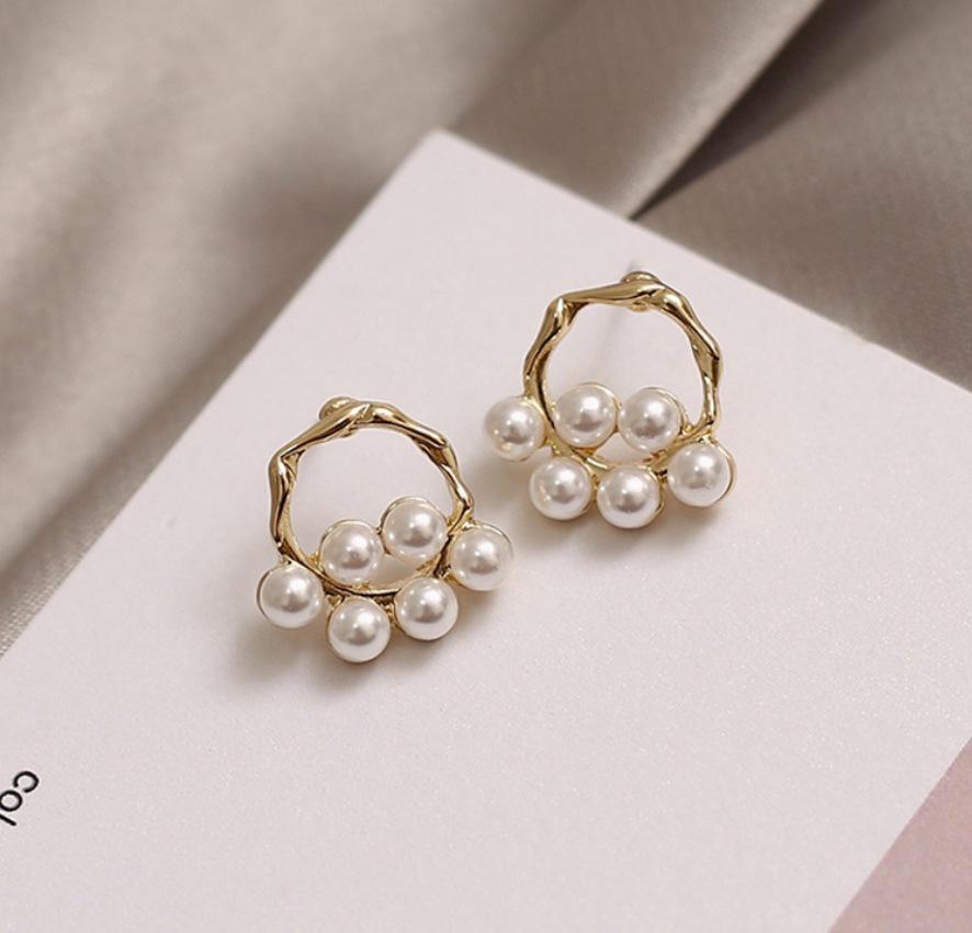 Pendientes de perlas pequeñas de estilo coreano, pendientes de temperamento retro con anillo geométrico hueco, pendientes de temperamento, venta al por mayor