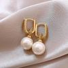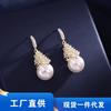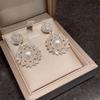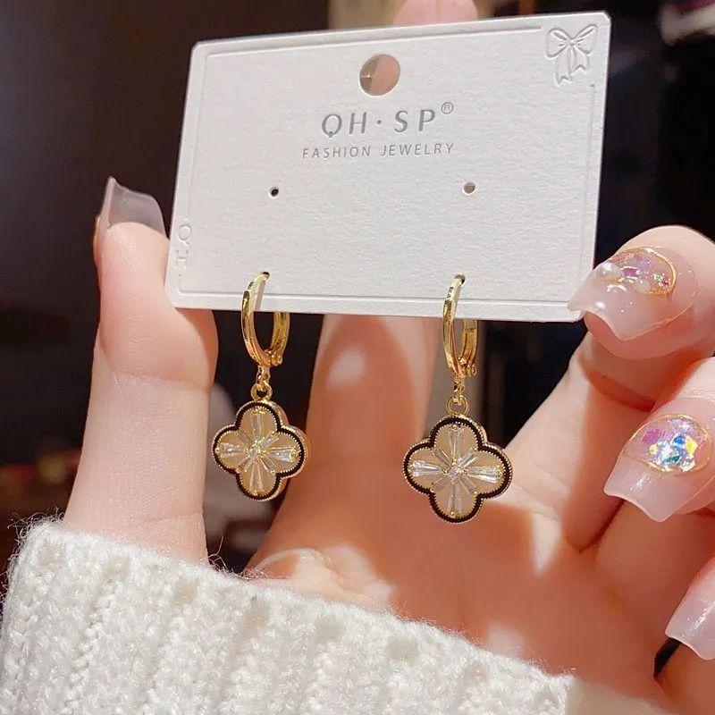Pendientes Dongdaemun elegantes y modernos con microincrustaciones de flores de cuatro hojas y hebilla para la oreja, con diseño de nicho y personalidad para mujer.