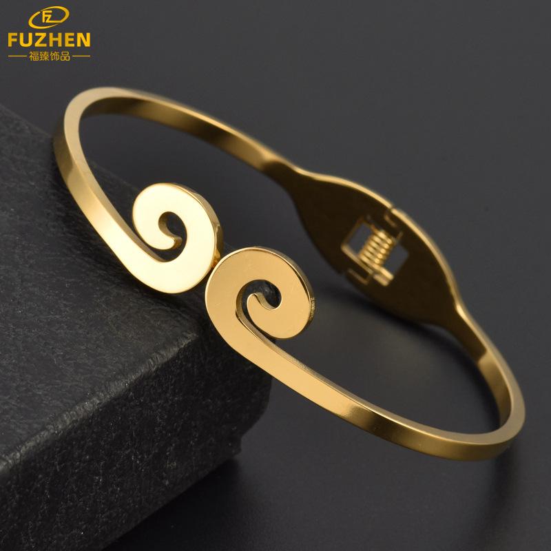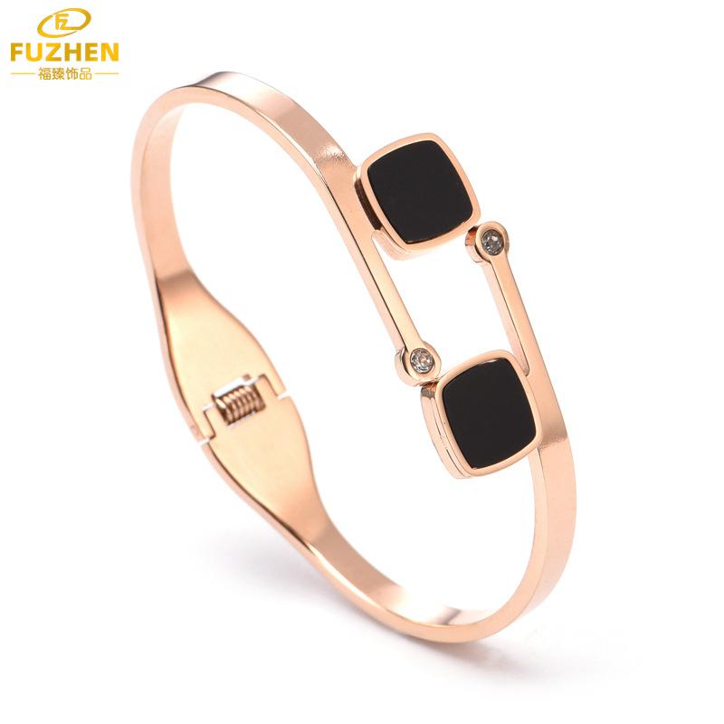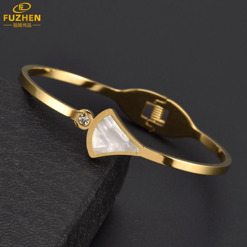 Pulsera de acero de titanio joyería al por mayor pulsera de resorte abierta chapada en oro de acero de titanio para mujer oro rosa doble concha doble pulsera de diamantes