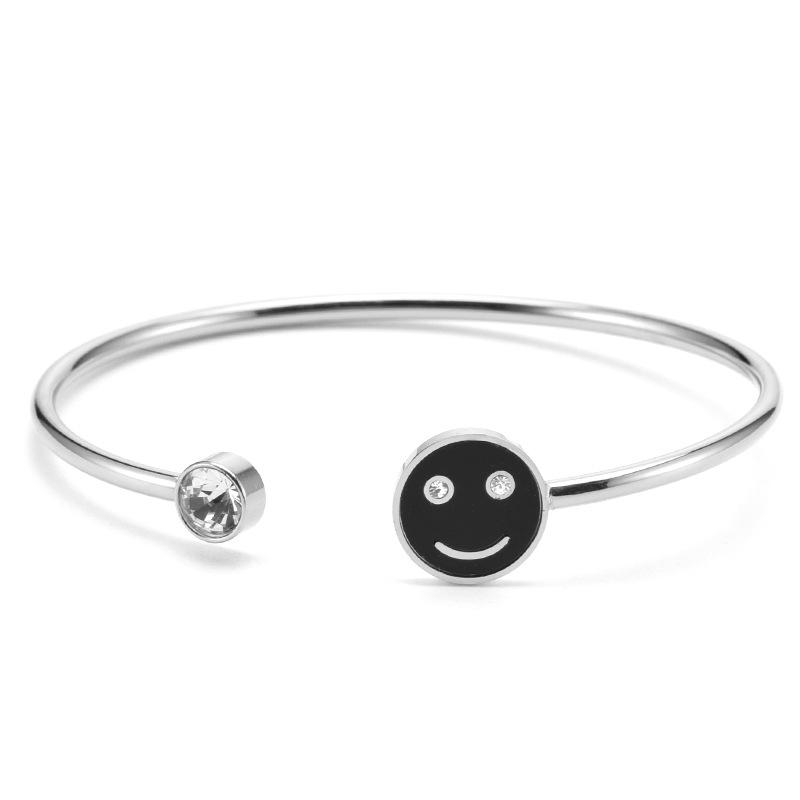 Pulsera de acero inoxidable con cara sonriente abierta, personalidad creativa, pulsera de circonitas con sonrisa, alambre de resorte retorcido, joyería de mano, nuevo estilo