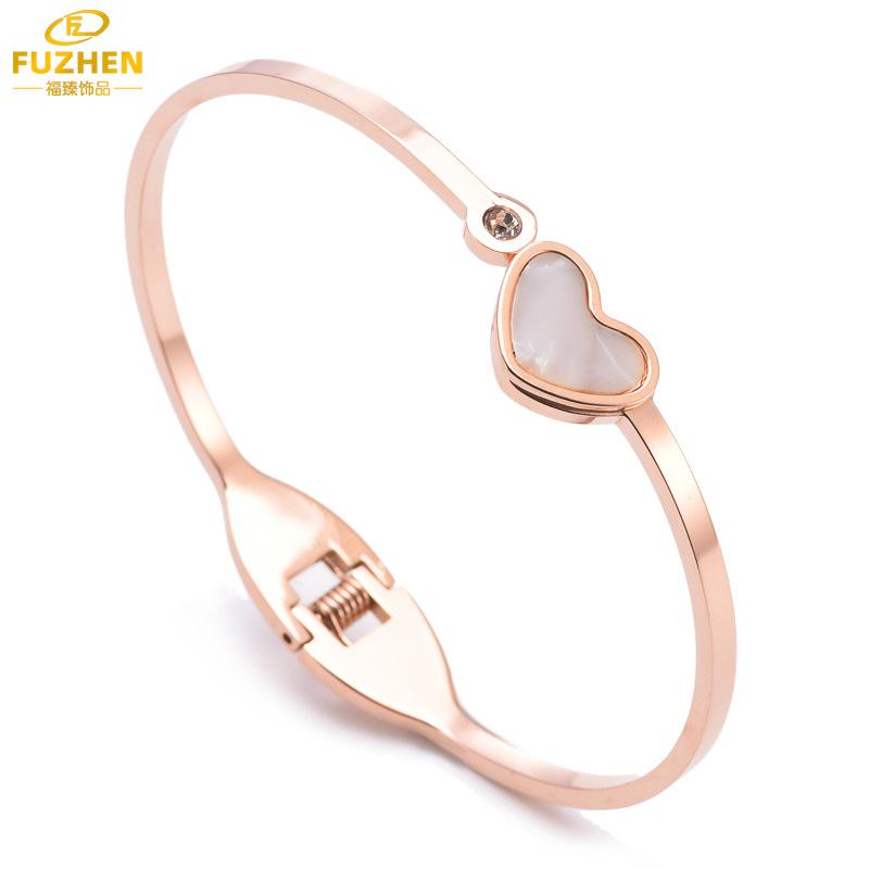 Versión coreana de pulsera de diamantes de concha blanca en forma de corazón dulce y fresca, temperamento de dama, pulsera de oro rosa, venta al por mayor transfronteriza