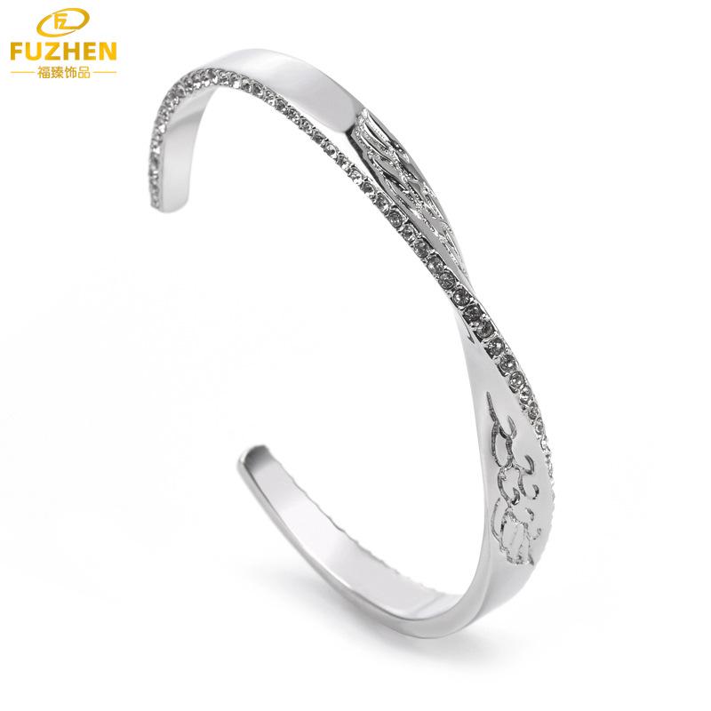 Pulsera retro de alas de ángel de acero inoxidable galvanizado color brillante moda retorcida acero de titanio C pulsera abierta femenina