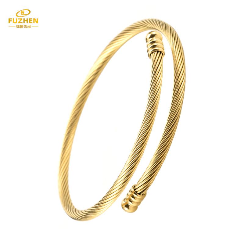 Pulsera elástica transfronteriza europea y americana con alambre suave abierto, estilo ins, pulsera de cuentas de acero ladrillo dorado, joyería apilable moderna y versátil