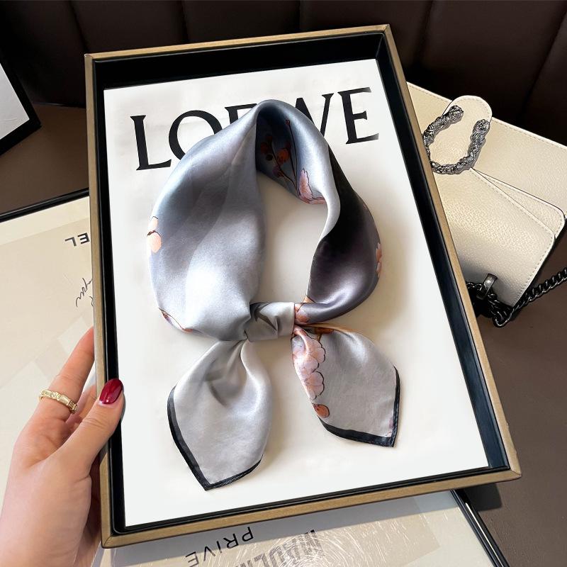 Bufanda cuadrada pequeña de seda morera para mujer, para primavera, otoño y verano, protección para el cuello, camisa de seda, bufanda fina