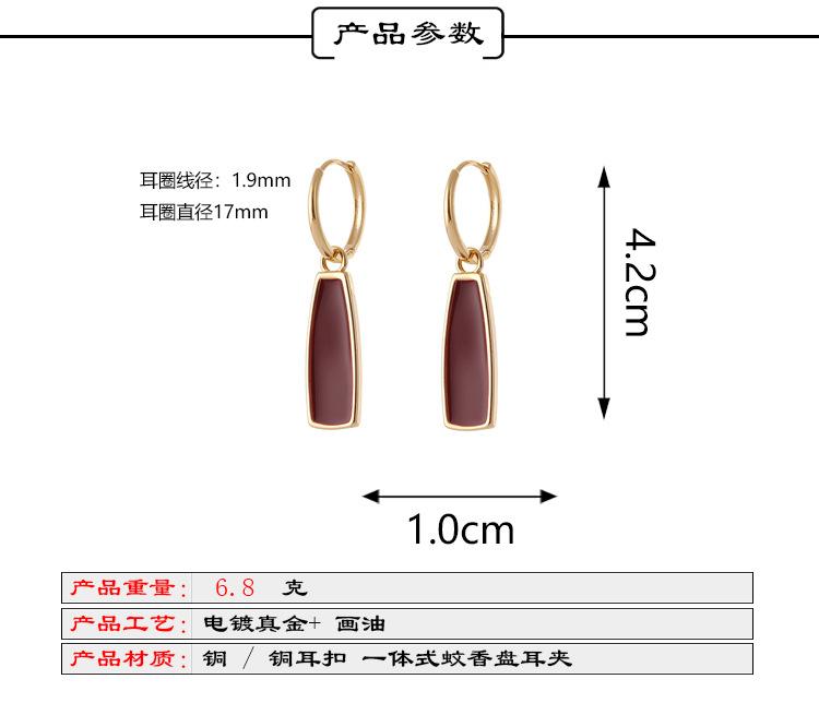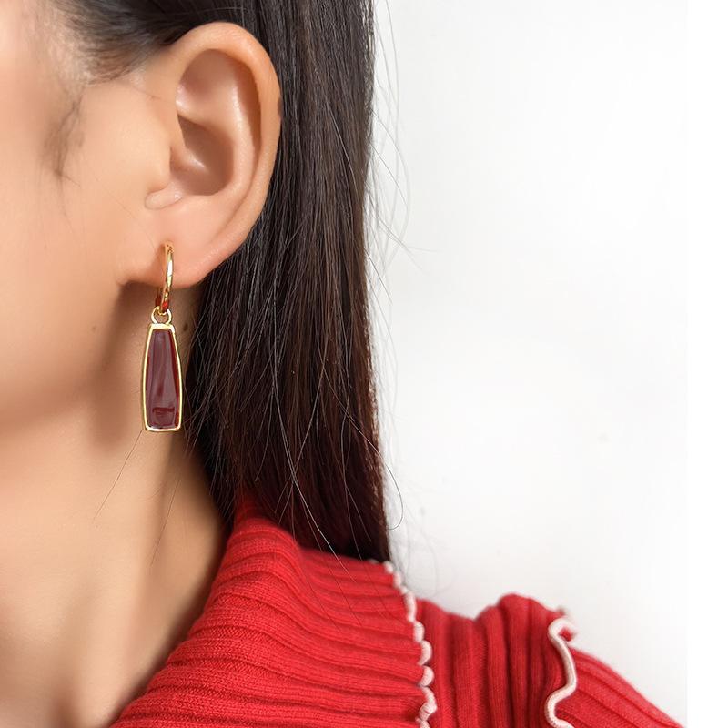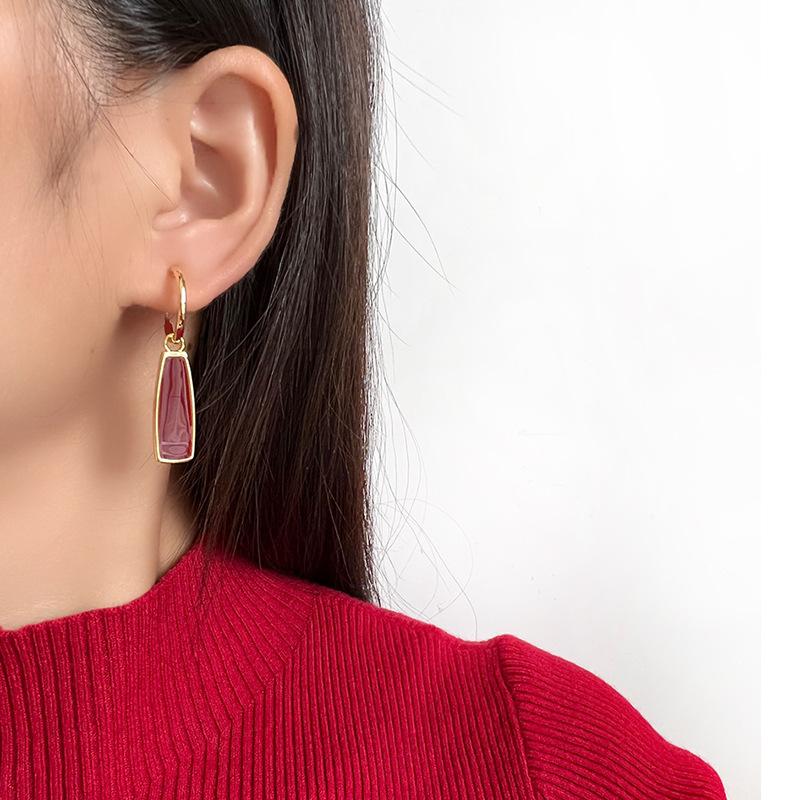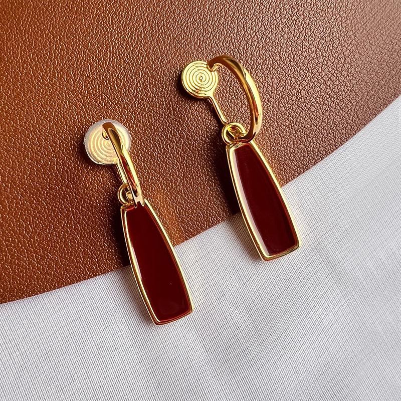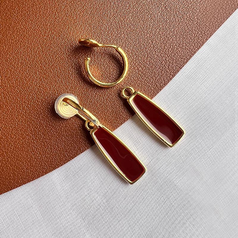 EH187 Pendientes geométricos rojos de Año Nuevo, aretes de aro, adelgazantes para el rostro sin perforación, temperamento integrado, clip para oreja de bobina de mosquito para mujer