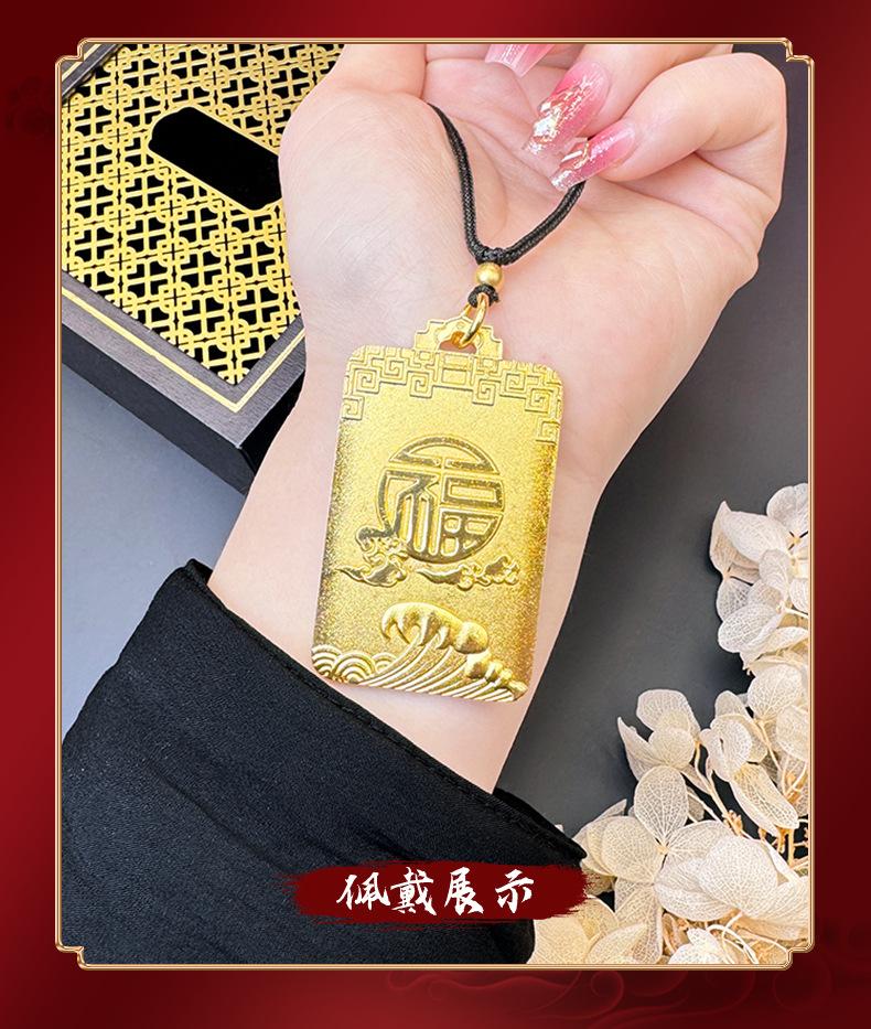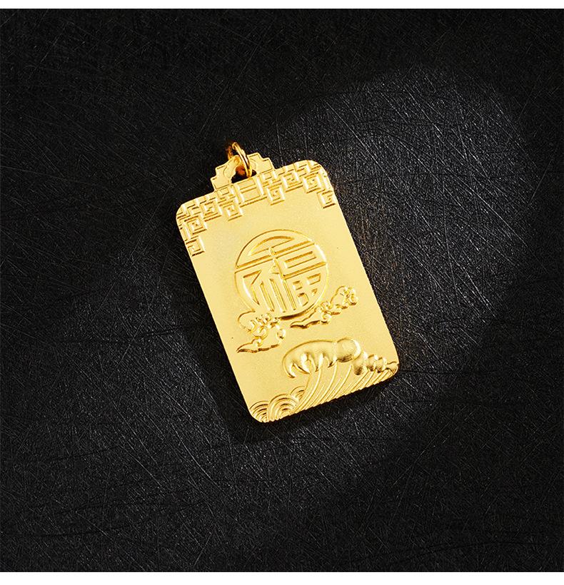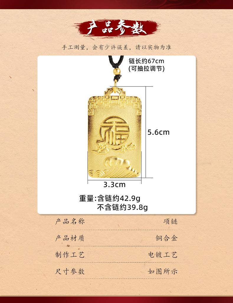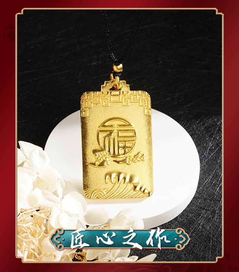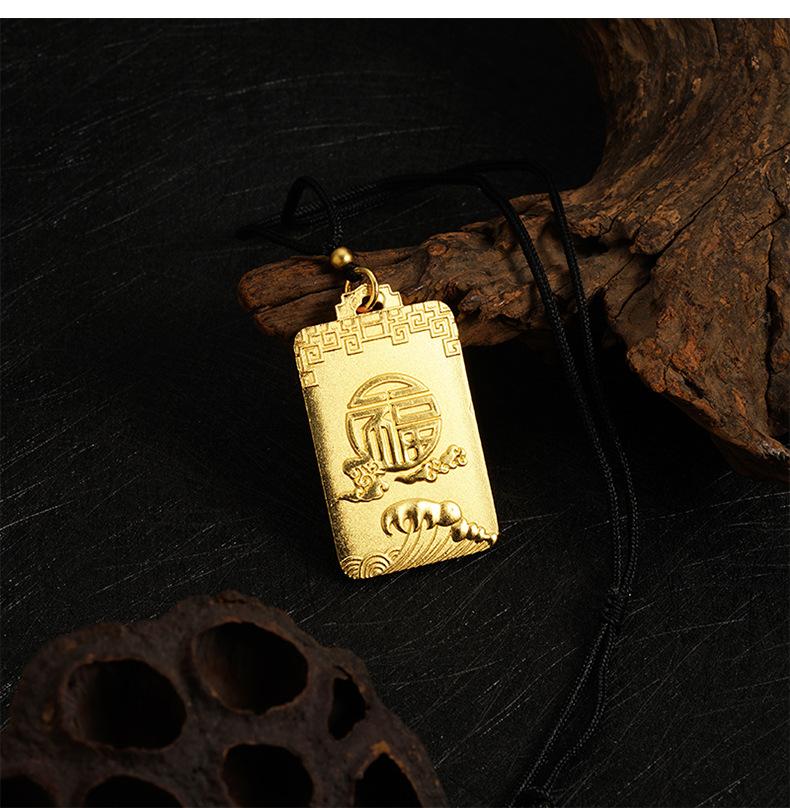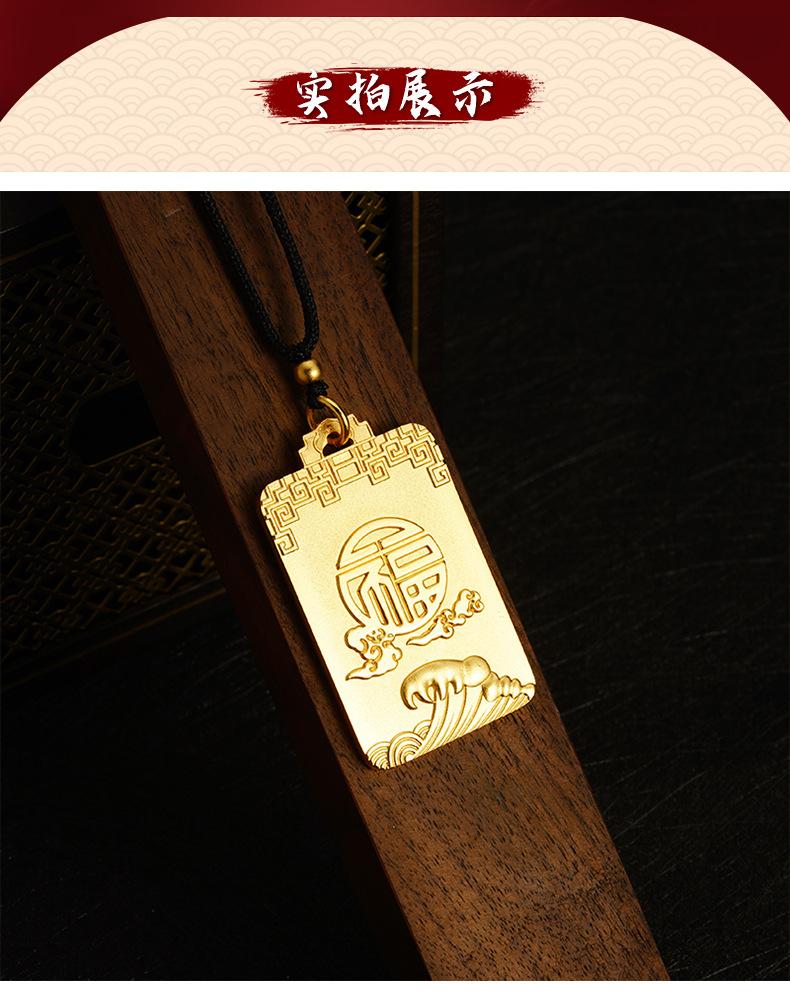 Collar cuadrado Ruyi con carácter fu, tarjeta sin importancia, onda Xiangyun, cuerda negra ajustable, estilo chino antiguo, joyería para hombres y mujeres al por mayor
