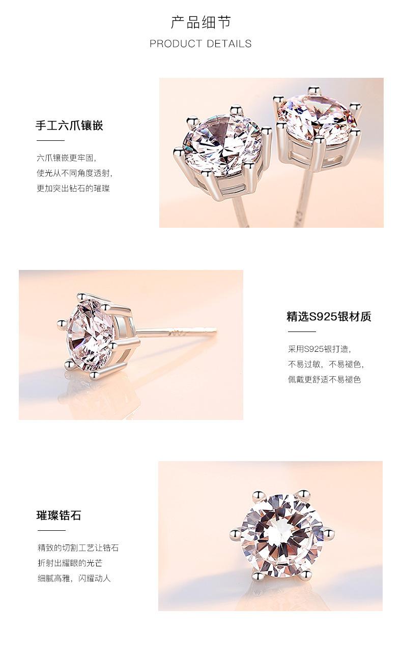 Compra Pendientes clásicos de plata de ley S925 con seis garras, con circonitas para mujer, con forma de hueso, ligeros, de lujo, sencillos y de alta calidad. al por mayor en Joom.pro