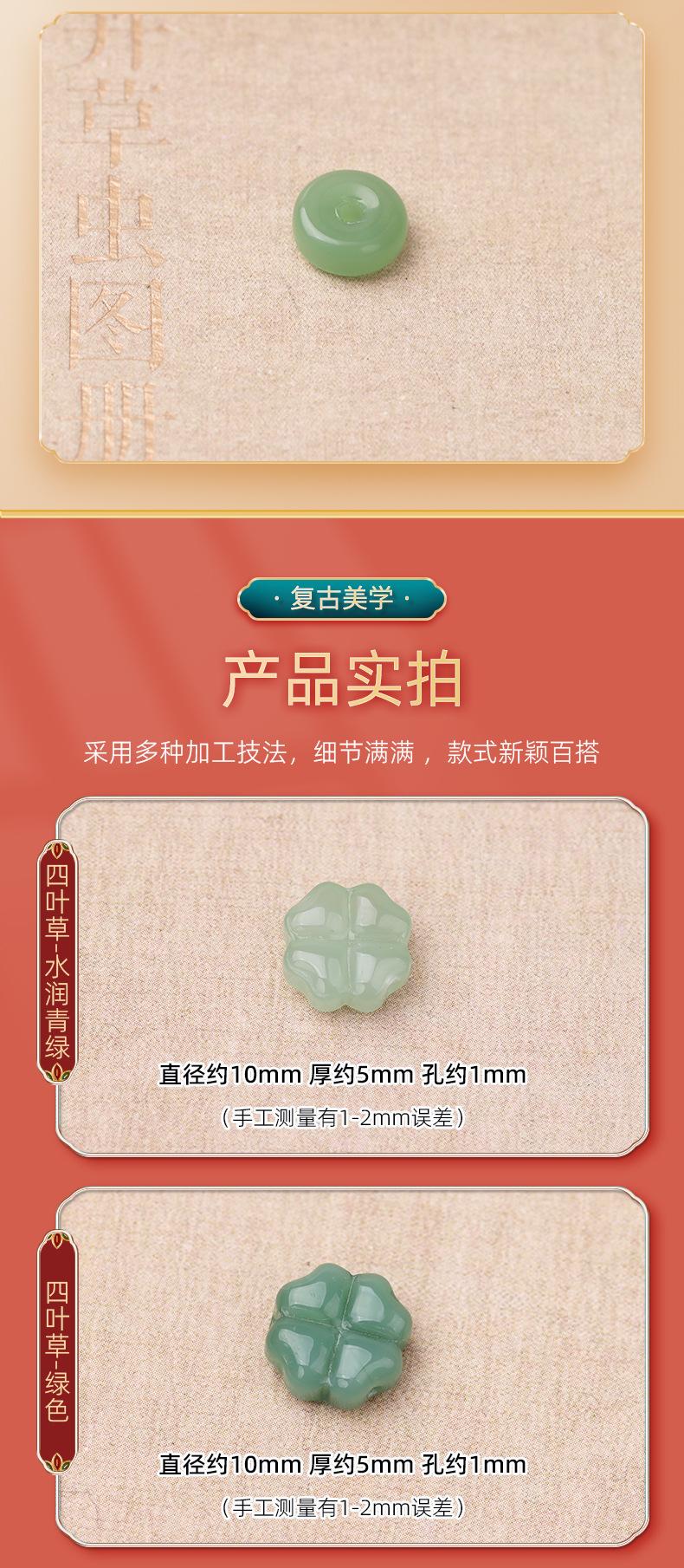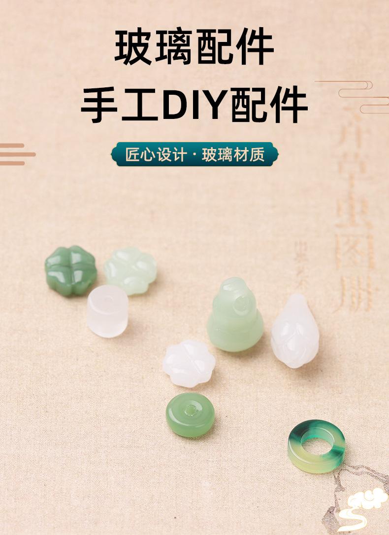 Hebilla de seguridad de hierba de cuatro hojas, accesorios de calabaza, joyería de jade de vidrio, colgante de horquilla antigua DIY hecho a mano, cuentas al por mayor