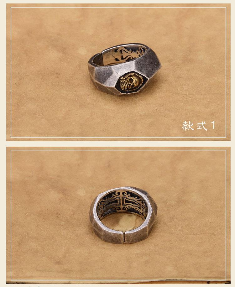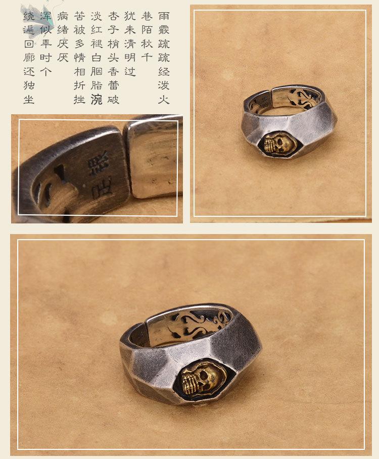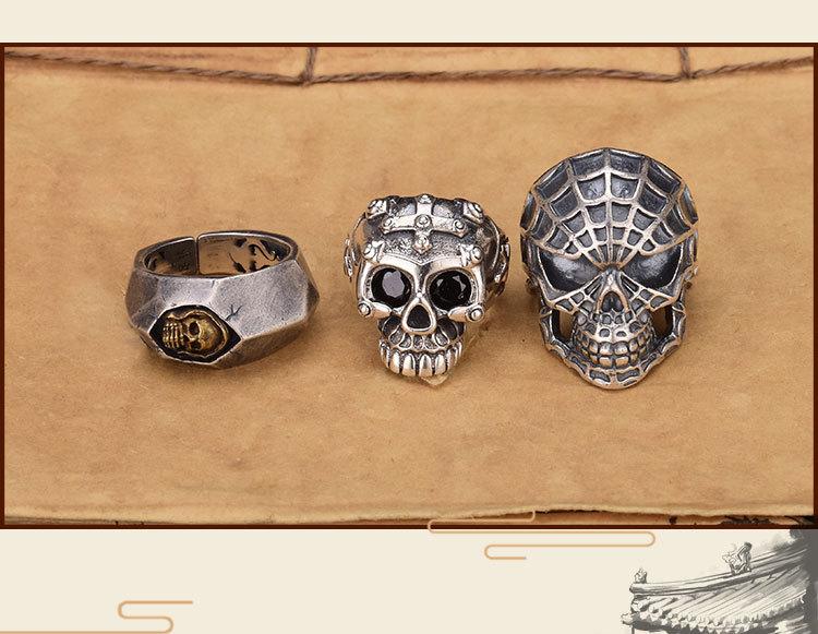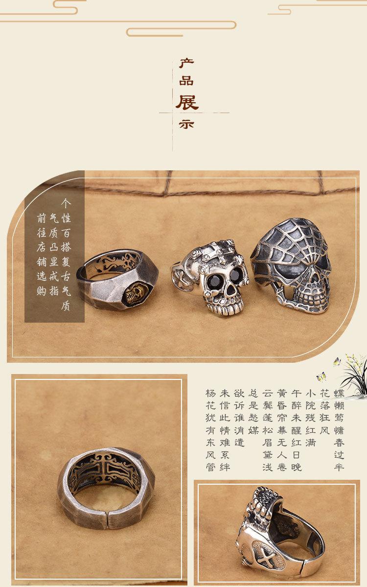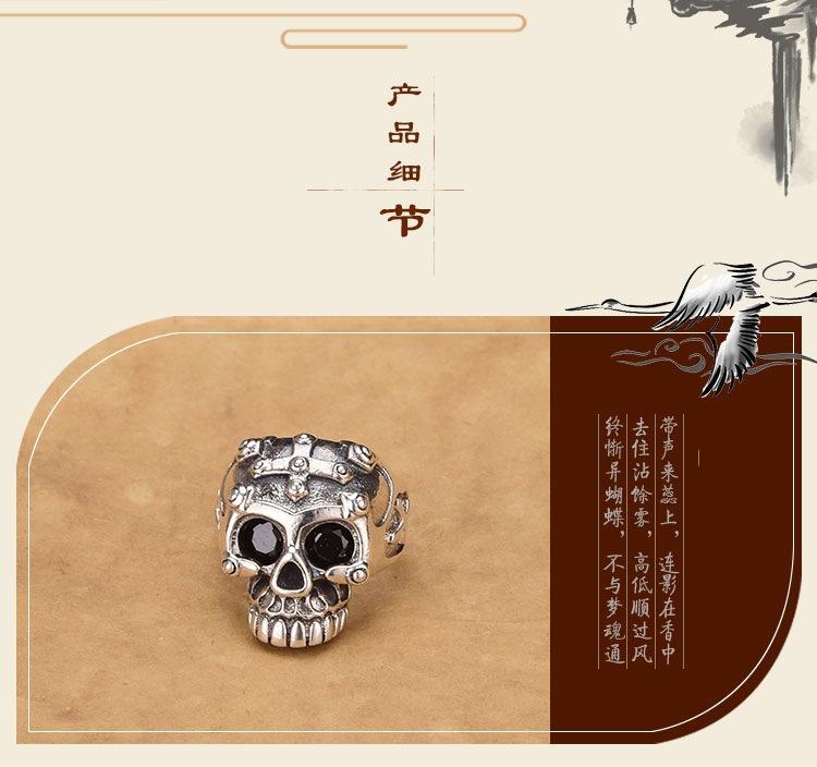 Qianye Thai - Anillo de plata estilo retro con personalidad que combina con todo, estilo hip hop, sencillo, abierto, con calavera ancha, para pareja, joyería de plata