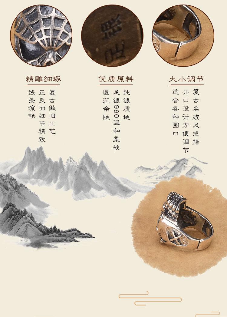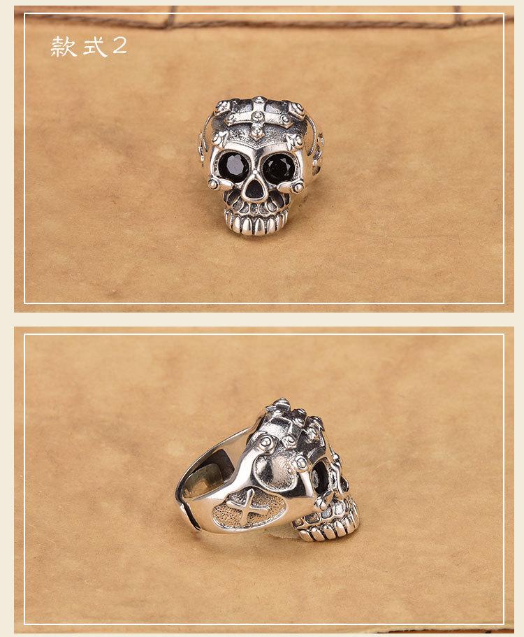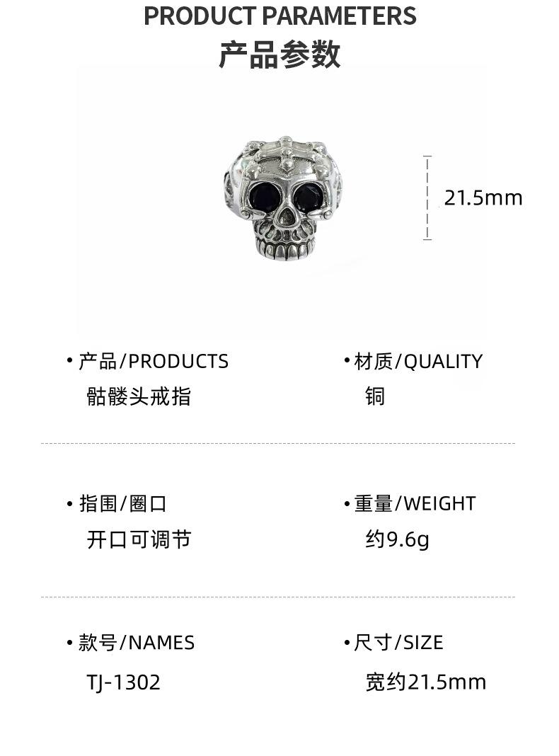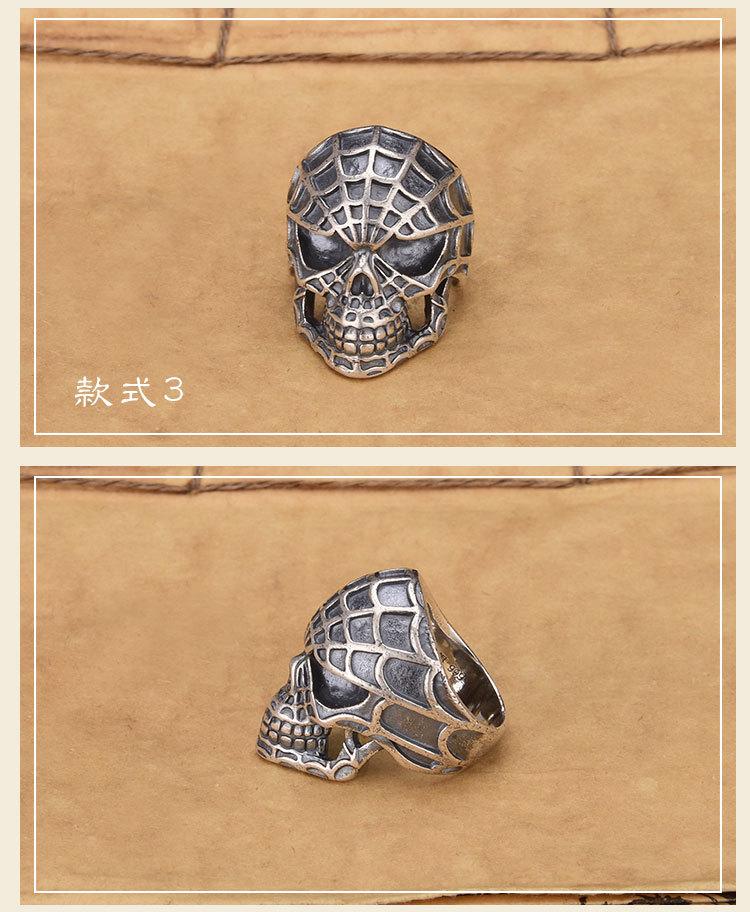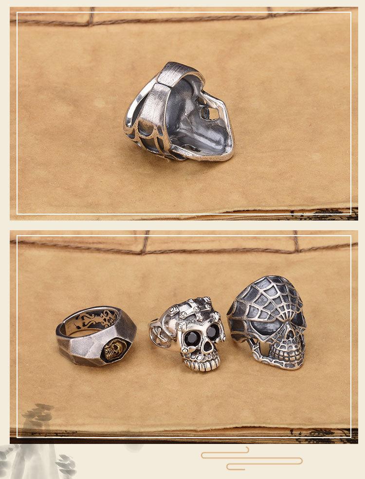 Qianye Thai - Anillo de plata estilo retro con personalidad que combina con todo, estilo hip hop, sencillo, abierto, con calavera ancha, para pareja, joyería de plata