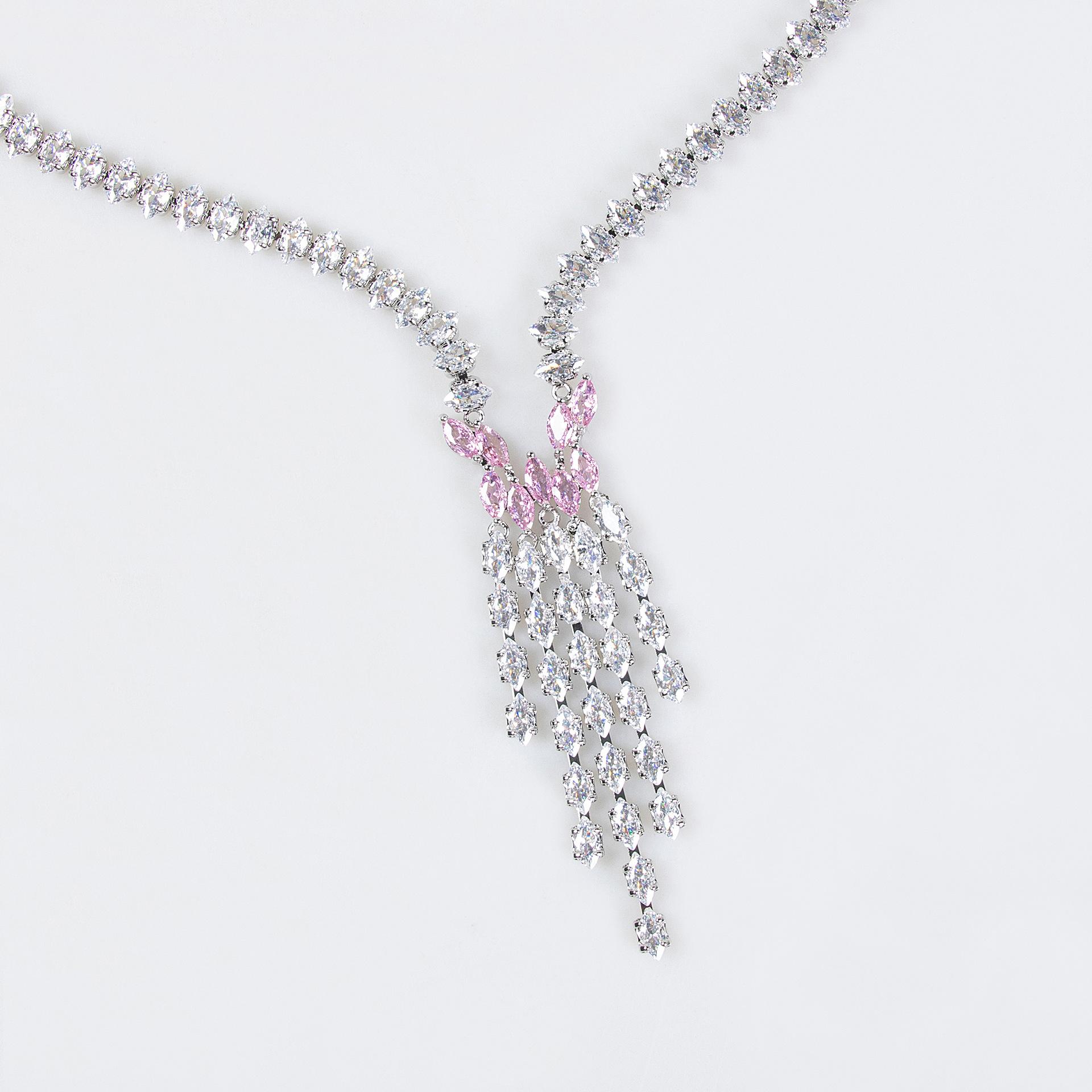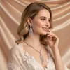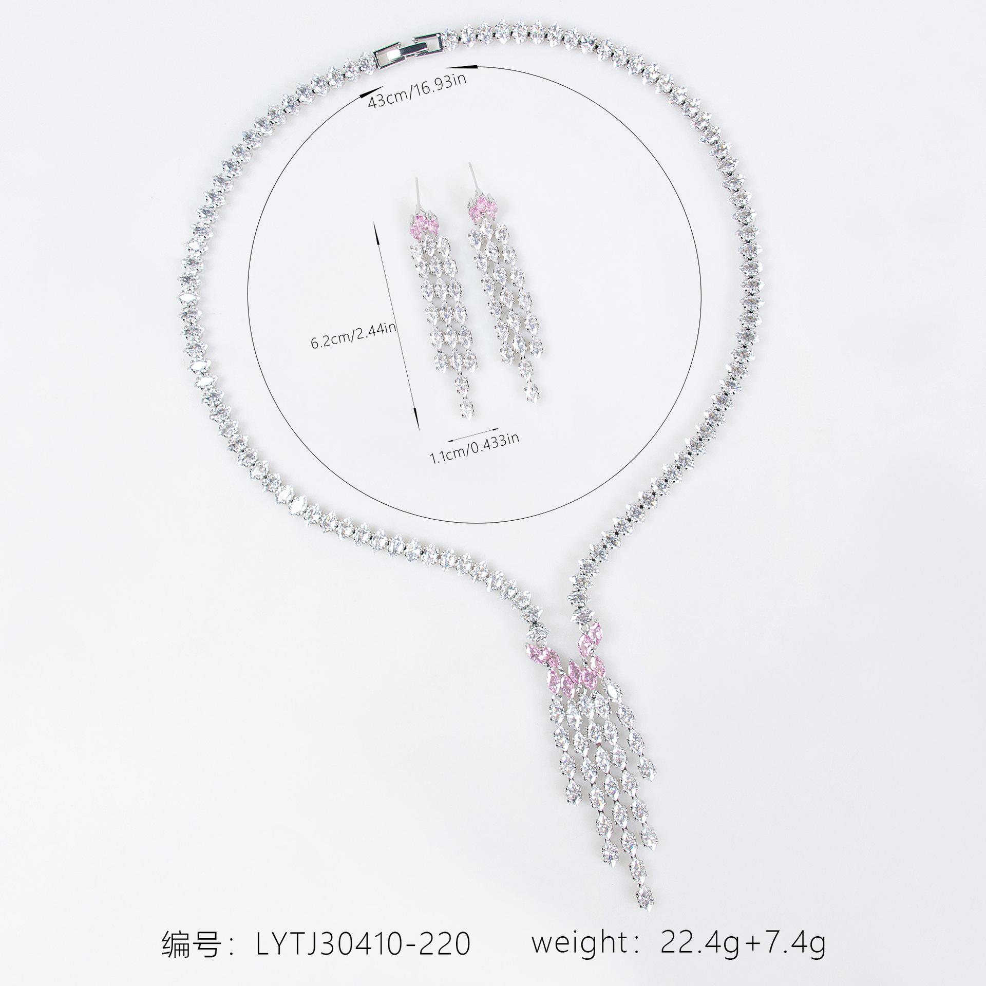Conjunto de dos piezas de pendientes y collar con borlas de gota de agua de lujo para mujer, traje de novia de circonita a juego