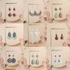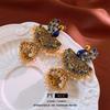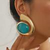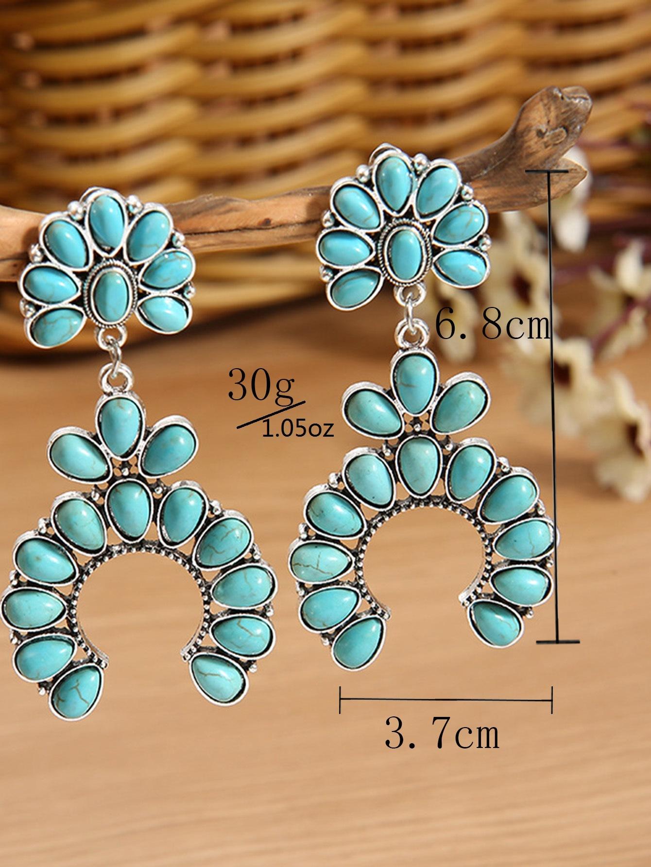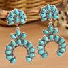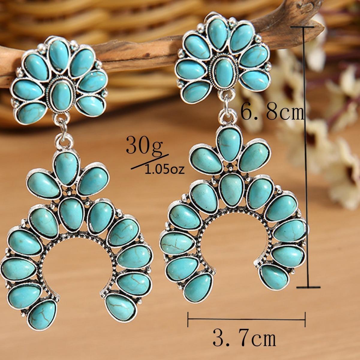 Pendientes con forma de abanico hueco de turquesa retro transfronterizos europeos y americanos, estilo étnico, exagerados, minimalistas, elegantes, personalizados a juego.