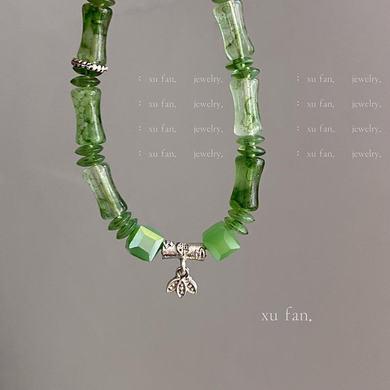 Pulsera Nueva Festival de la Rima de Bambú Chino Pulsera de Cuentas de Hoja de Bambú Verde Estilo Étnico Palacio Retro Pulsera Hanfu Antigua