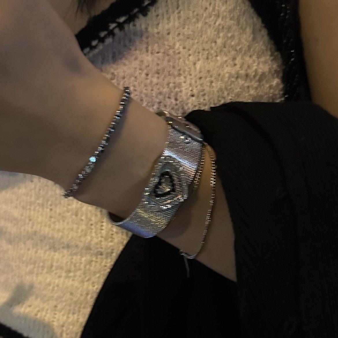 Pulsera de acero inoxidable con diamantes de imitación, accesorios transfronterizos sencillos europeos y americanos, 2023