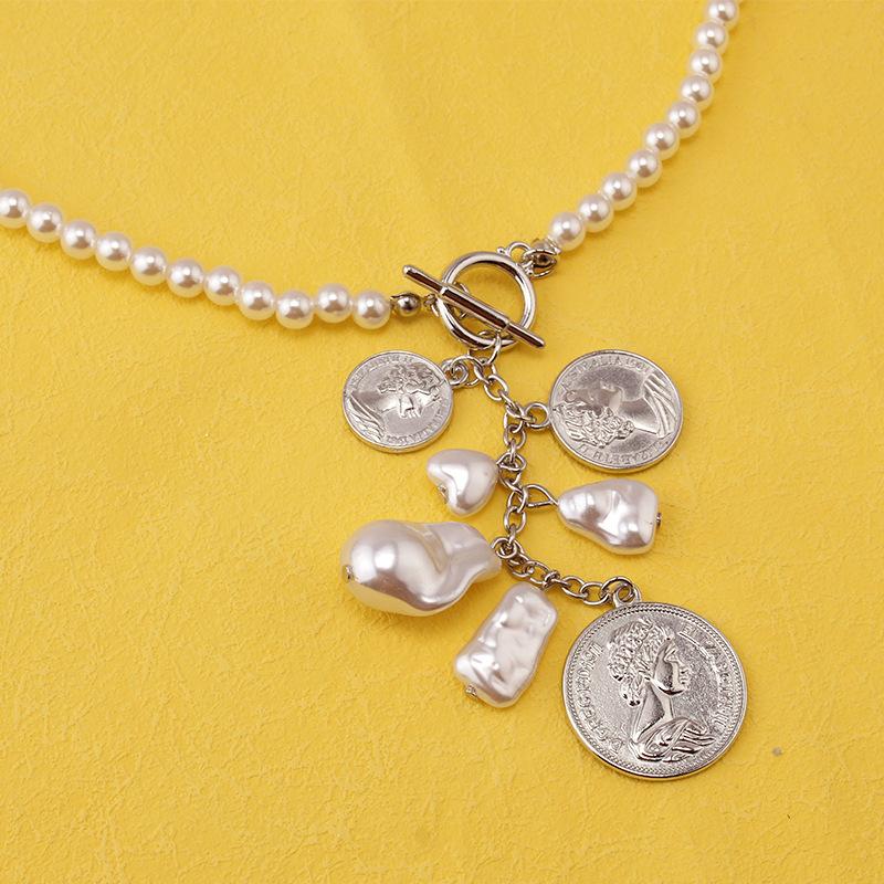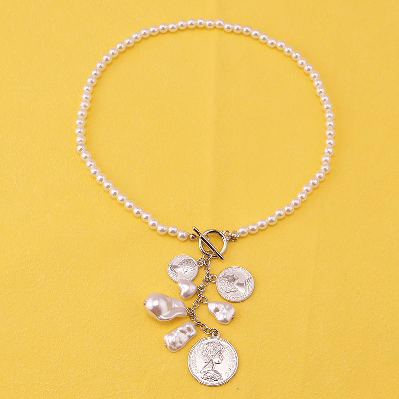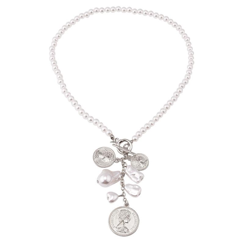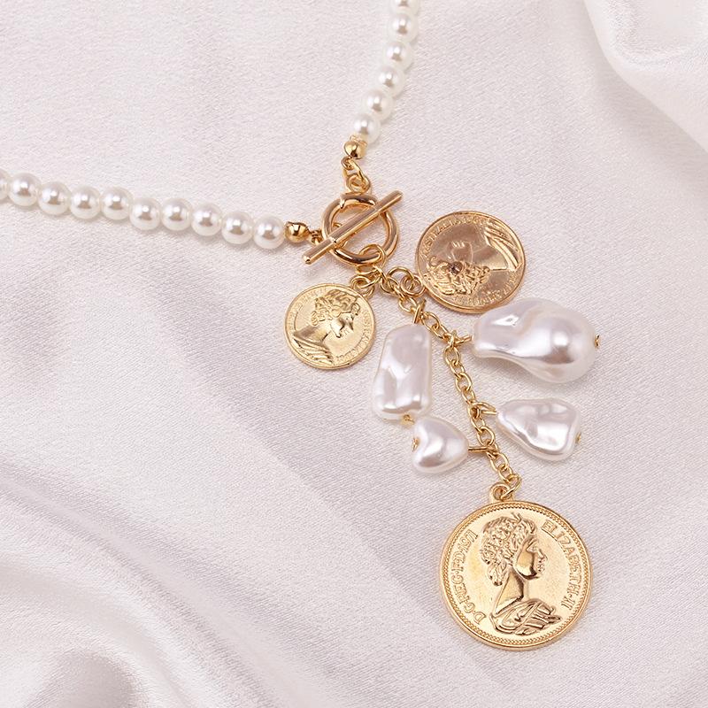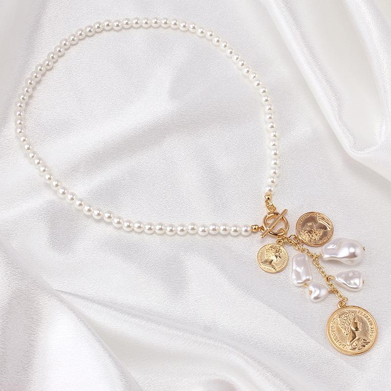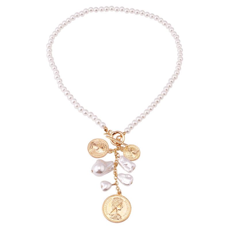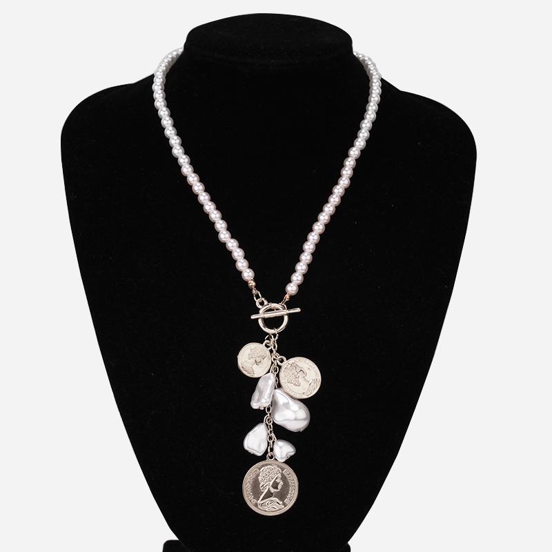 Compra Collar de perlas de imitación con borlas irregulares estilo barroco retro, cadena de cuentas estilo europeo y americano, colgante de moneda humana al por mayor en Joom.pro