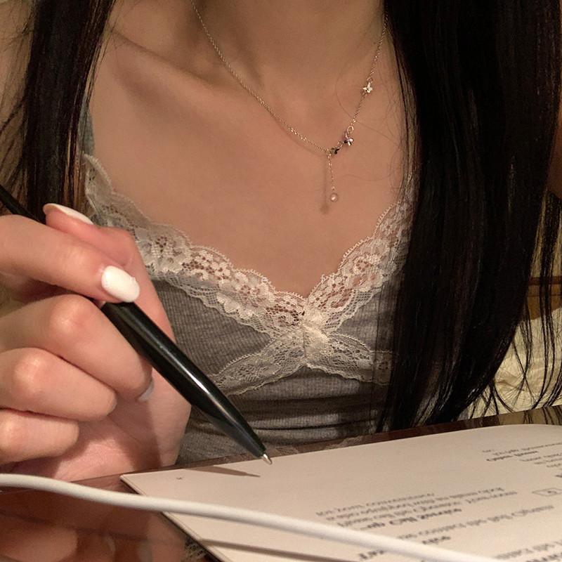 Collar con colgante de mariposa coreana y circonita para mujer, ligero, de lujo, elegante, de alta gama, con diseño de nicho, para celebridades de Internet.