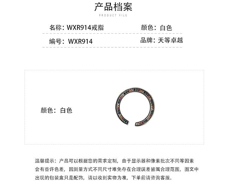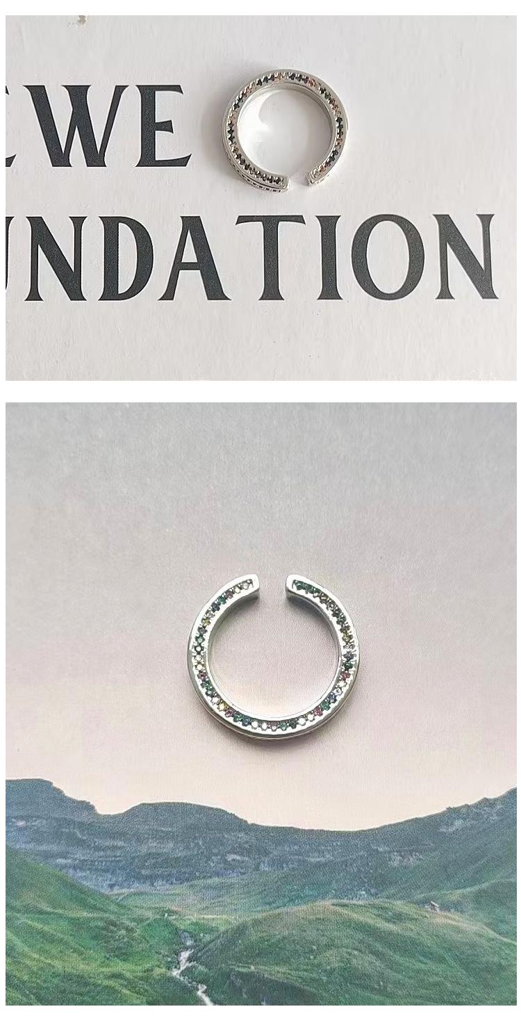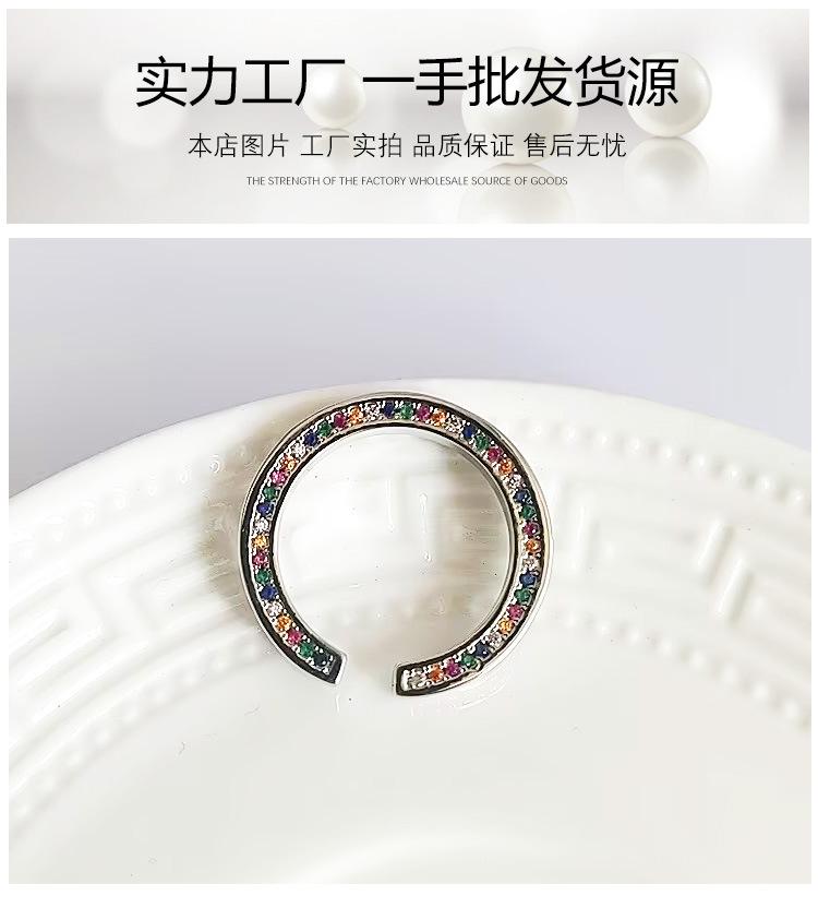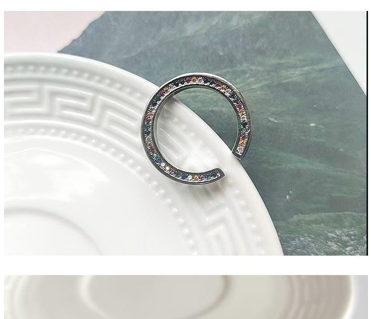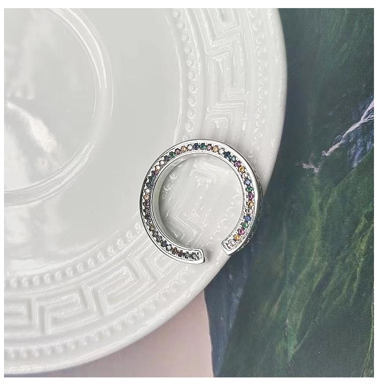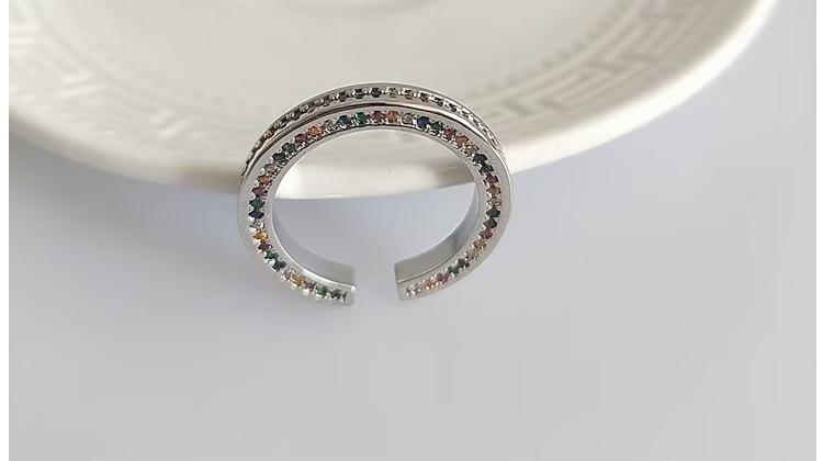 Anillo abierto de circonita arcoíris con baño de oro auténtico, estilo europeo y americano, elegante y moderno, con un elegante diseño de mano.