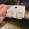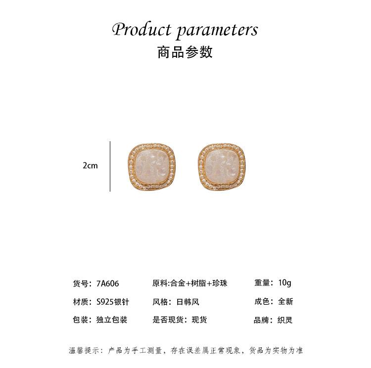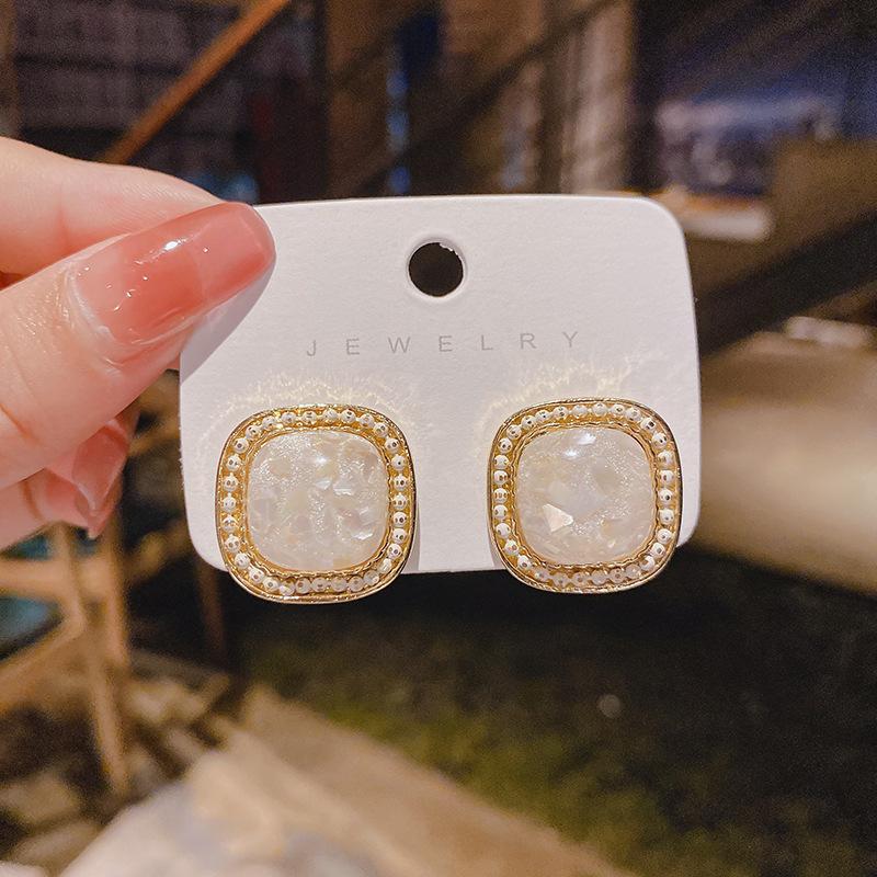 Pendientes de plata S925 con forma de aguja, estilo dulce de Corea del Sur, sencillos, geométricos, cuadrados, con concha irregular rota, para mujer